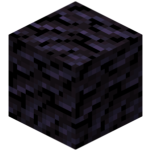 Obsidian is a block found in all dimensions or created when water flows over a lava source. It has high durability and blast resistance rendering it immune to normal explosions. Obsidian is used for crafting and to make the frame for a nether portal.
