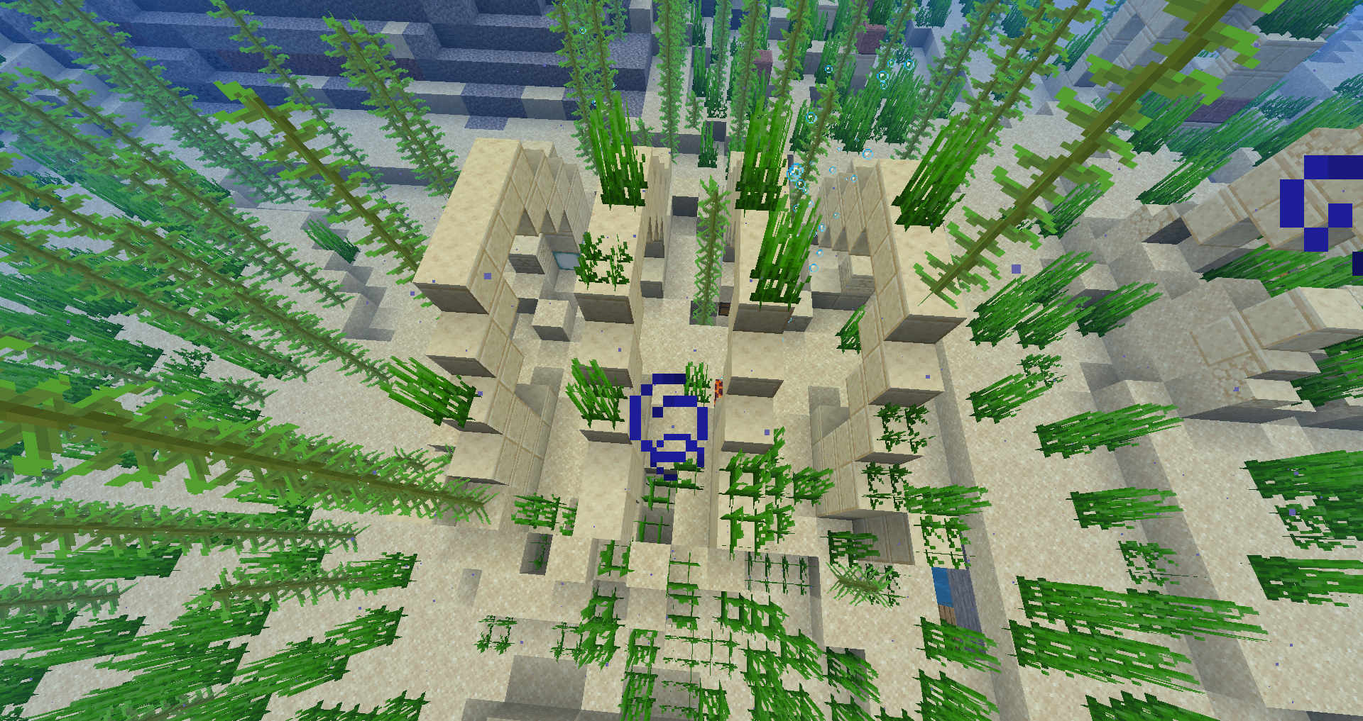 Ocean ruins or underwater ruins are oceanic structures primarily composed of stone bricks or sandstone. They come in many different sizes varying from large villages to single ruined huts. They are rare, and have cold and warm variants.