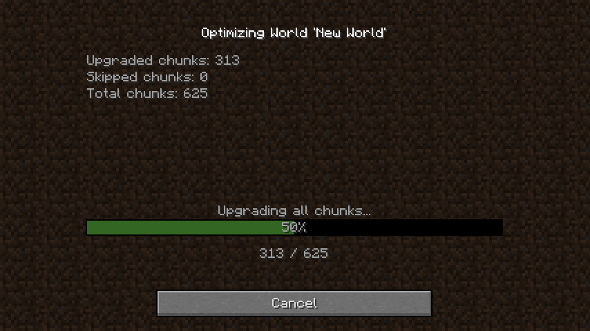 - Creates an unoptimized backup of the world, and then proceeds with optimizing the original one.