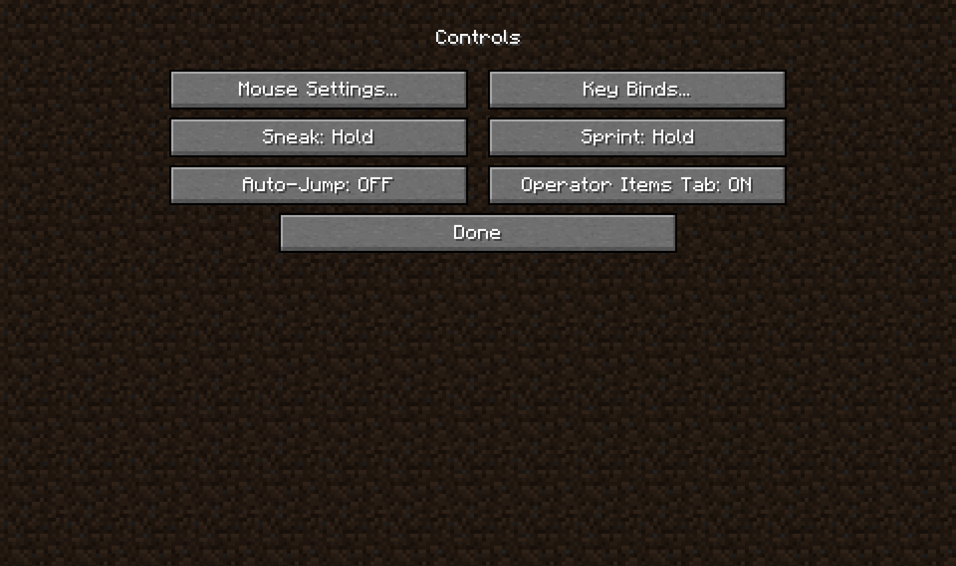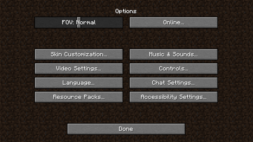 Minecraft's user environment can be configured through the Options setting. A few additional options can be changed only by editing the options.txt file manually.