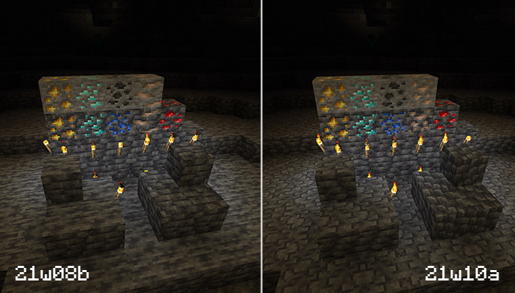 - The texture of ores were changed in 1.17 to make them distinct for color blind players.[3]