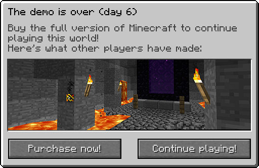 A purchased version of minecraft has unused code, like "demo.day.1=This demo will last five game days, do your best!".
