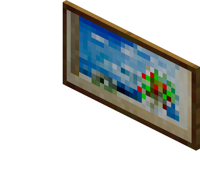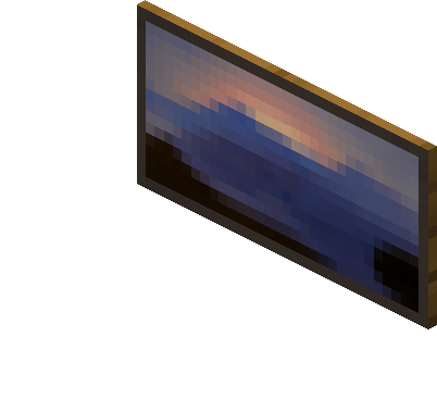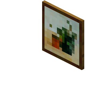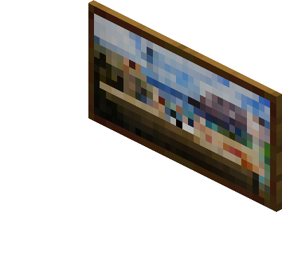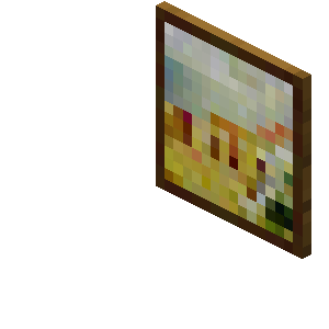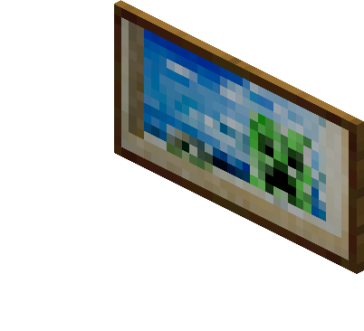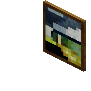 Paintings can be placed on the sides of solid blocks, signs, banners, or sculk veins . A small gap is visible between the painting and attachment surface. There are several different sizes of paintings (see below). When placed, a painting checks for the largest amount of space it has. It then chooses a random painting of that size. The player can add blocks around the painting to ensure it is the size wanted. When the supporting blocks are removed, the painting breaks after 20 game ticks (1 second) if no supporting blocks are replaced during that interval.