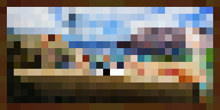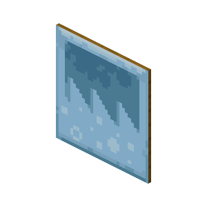 Mountains and a lake, with a small photo of a mountain and a creeper looking at the viewer through a window. | Alpha v1.1.1 | ||