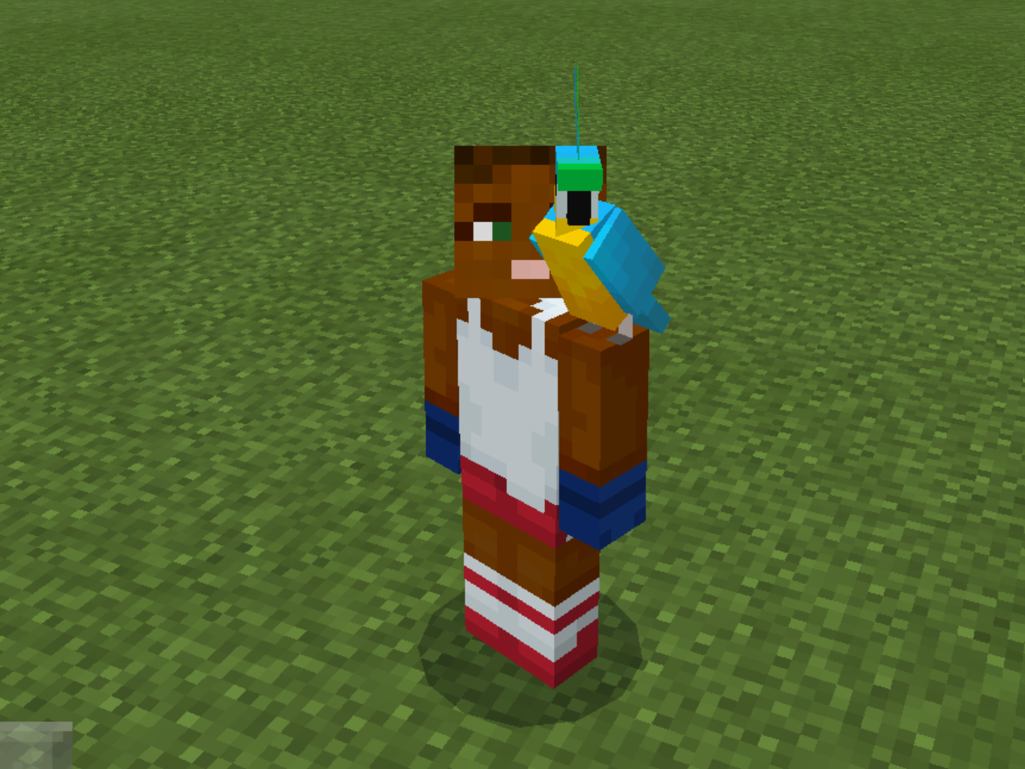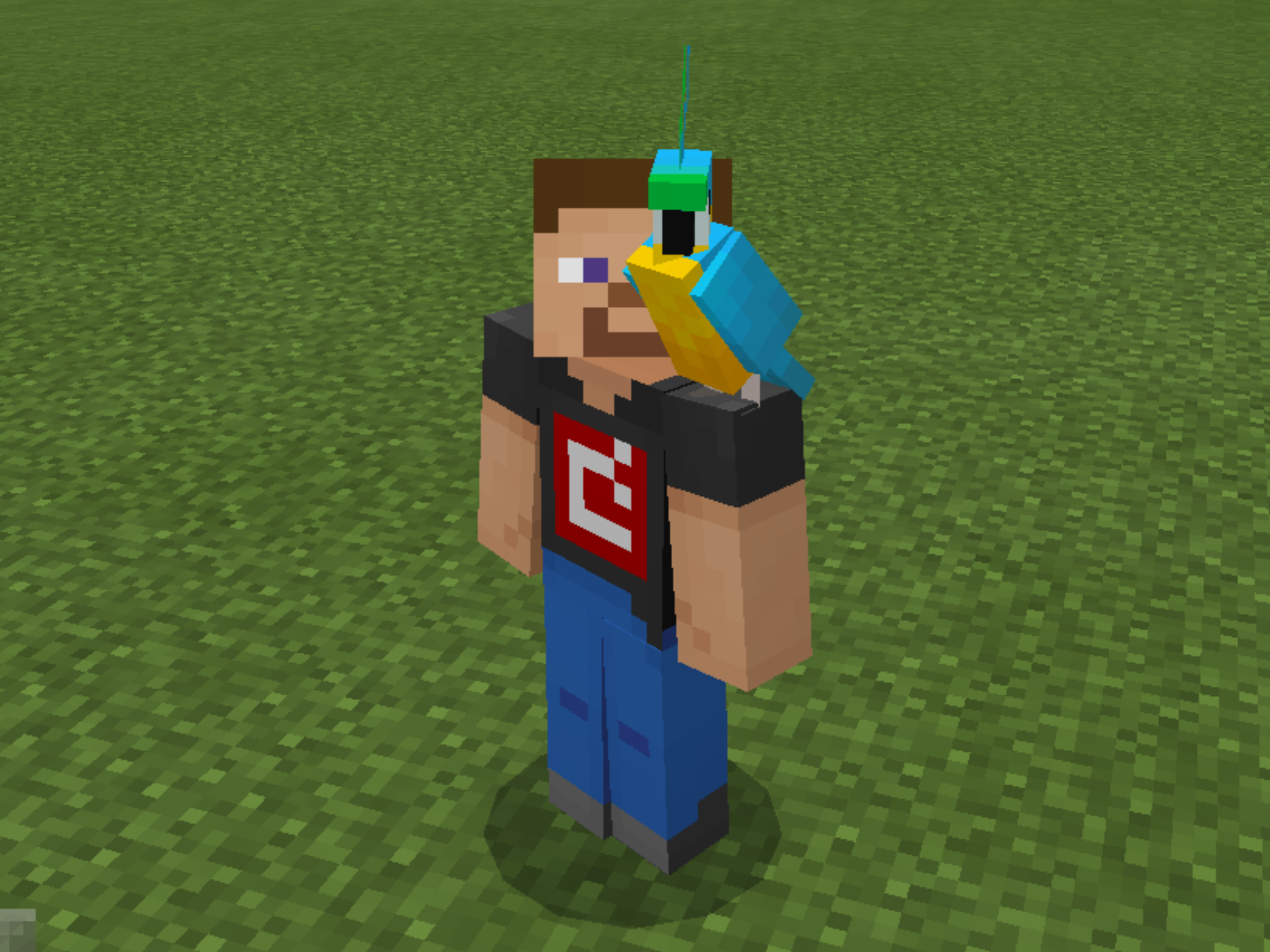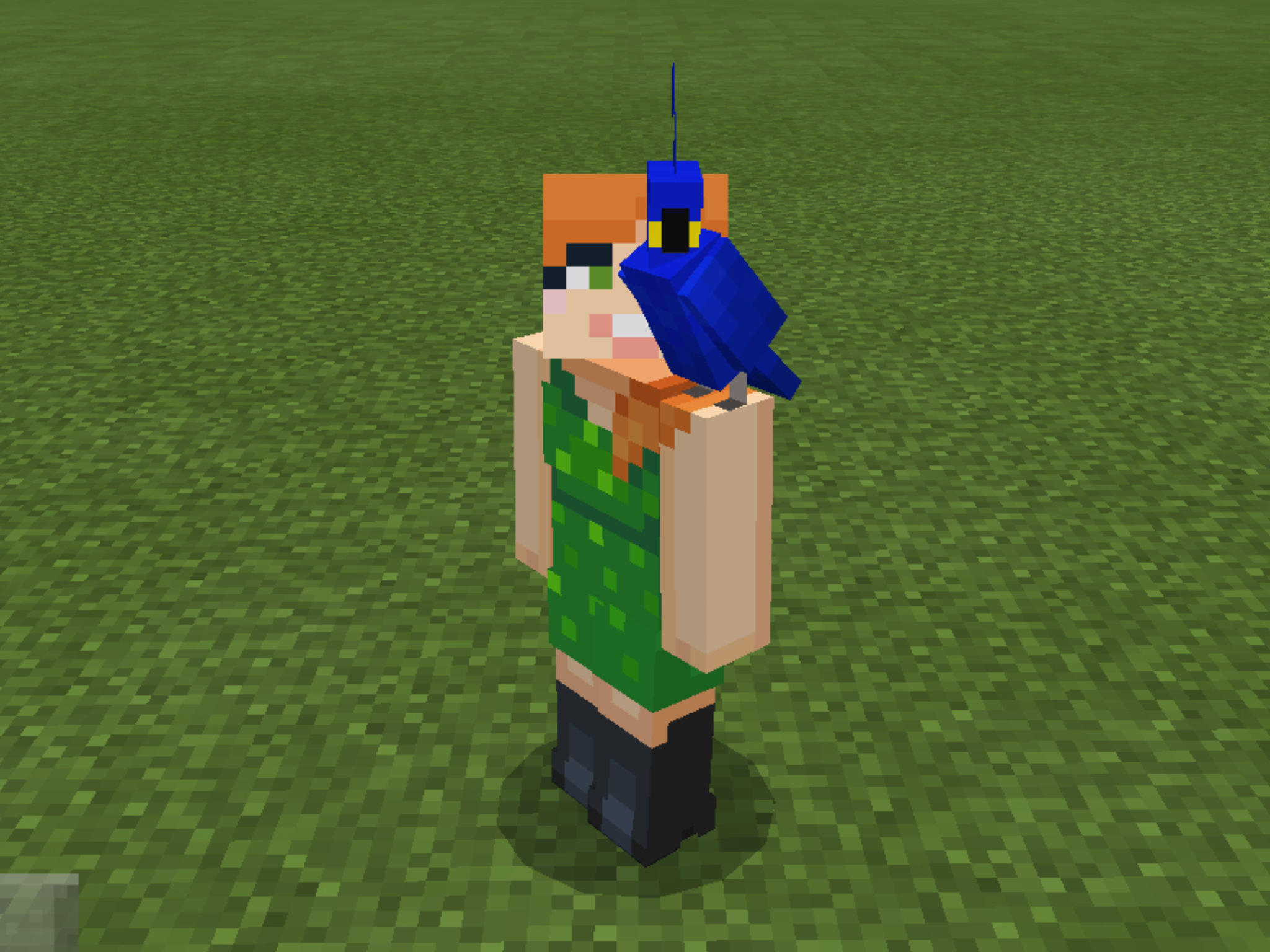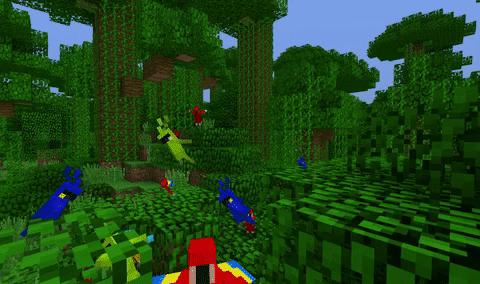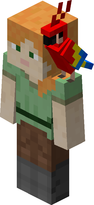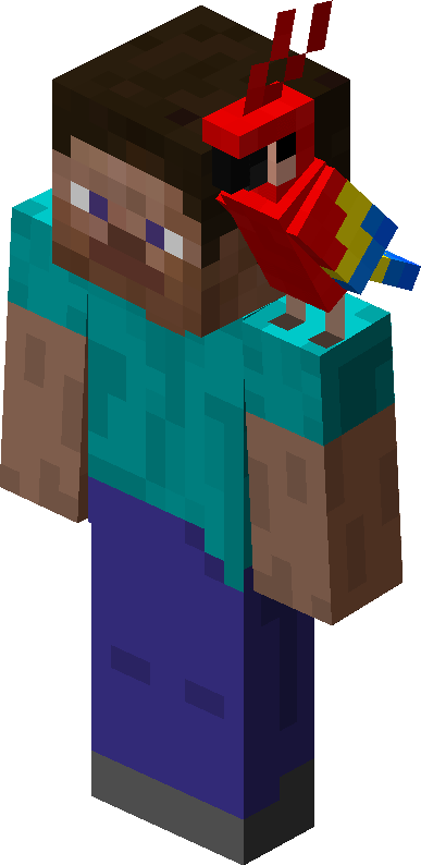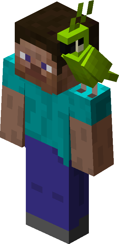 Parrots are rare tameable mobs found in jungles. Parrots can imitate sounds of nearby hostile mobs and can perch on the player's shoulders.