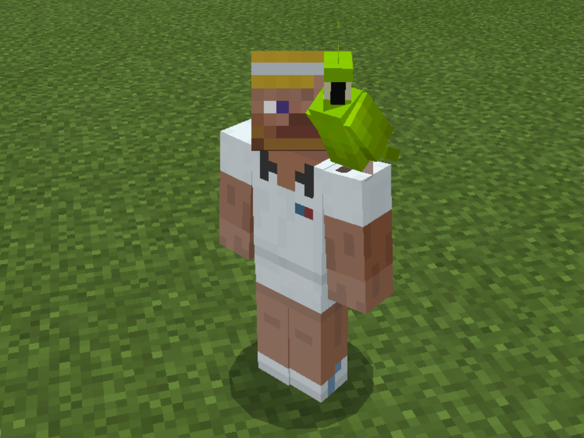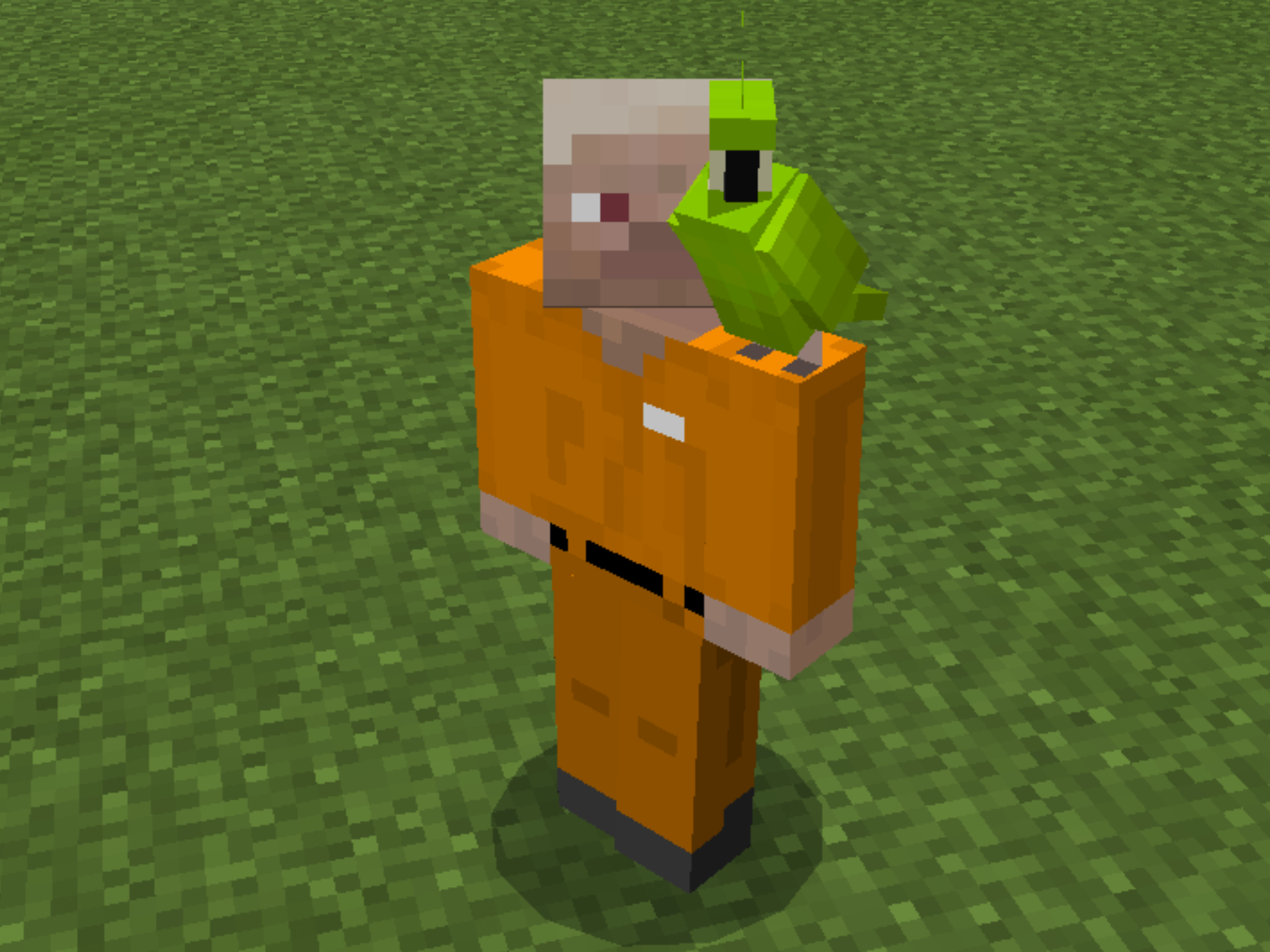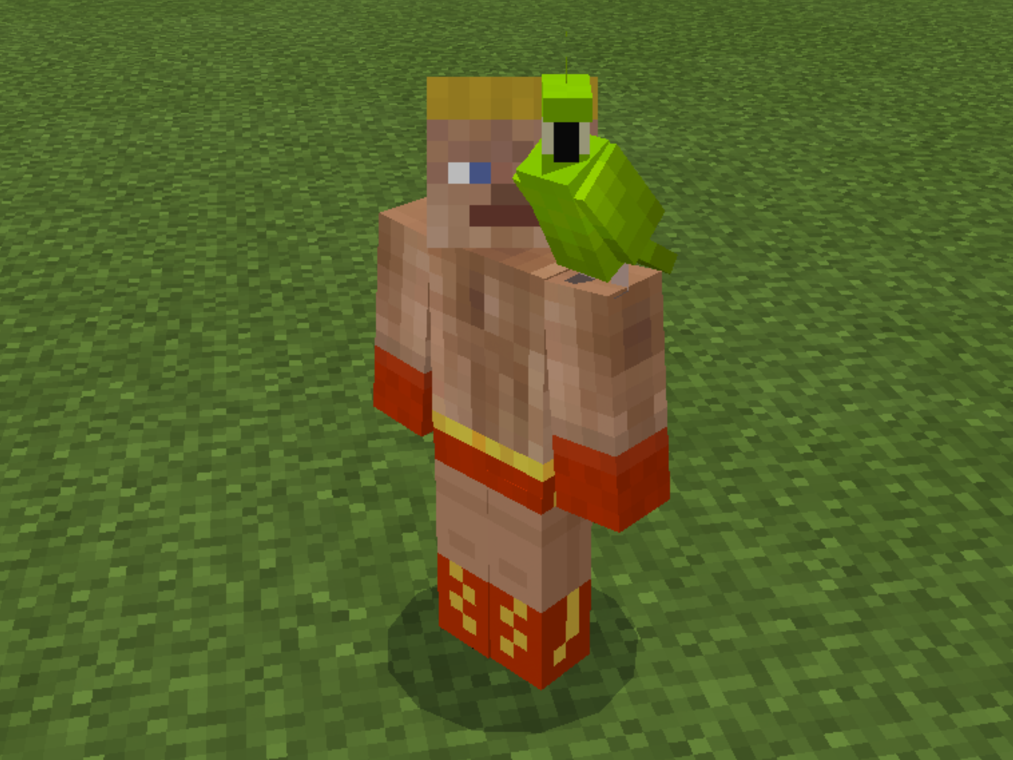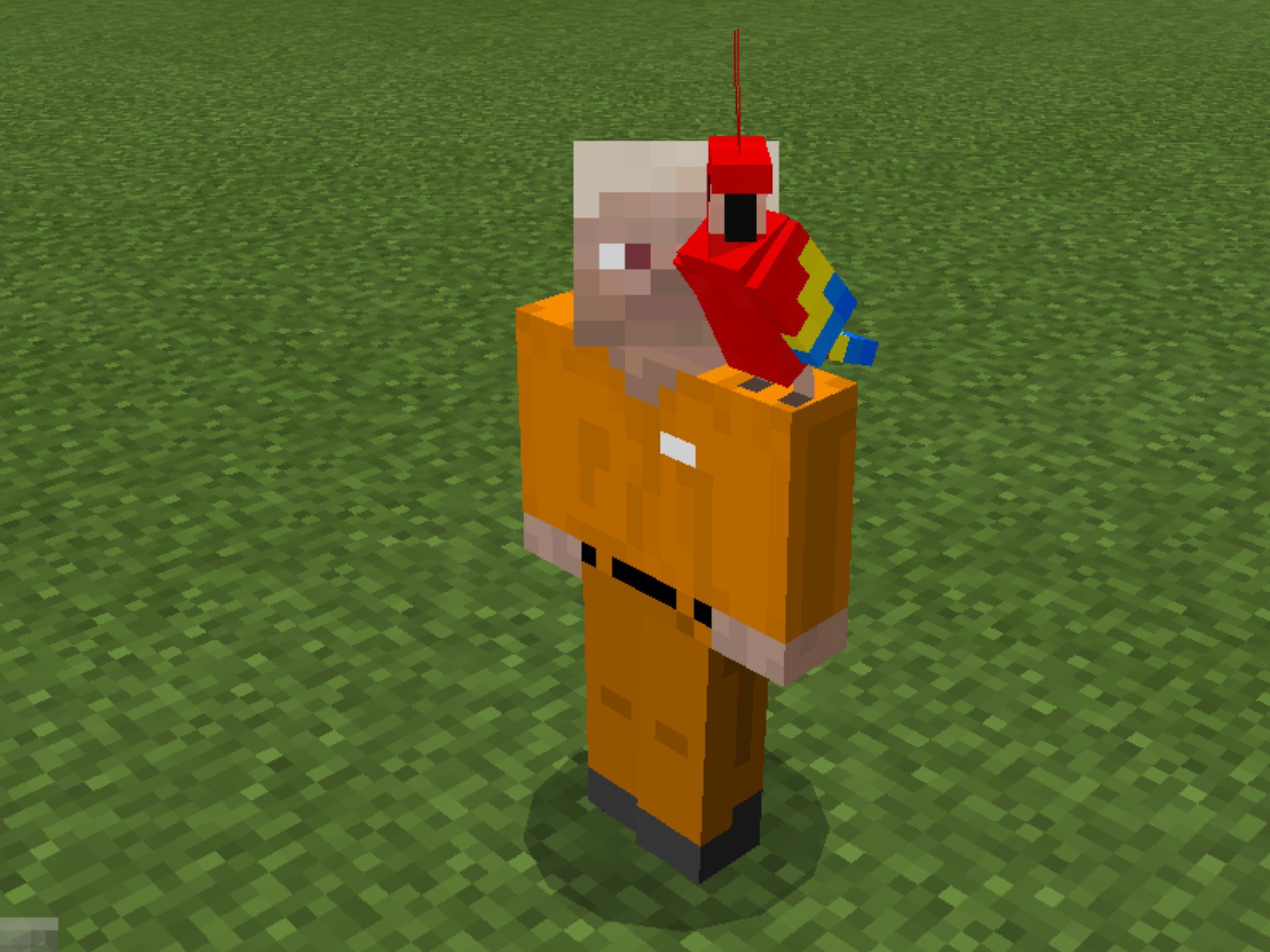 Note how the parrots crowd around the villager in a tight circle.