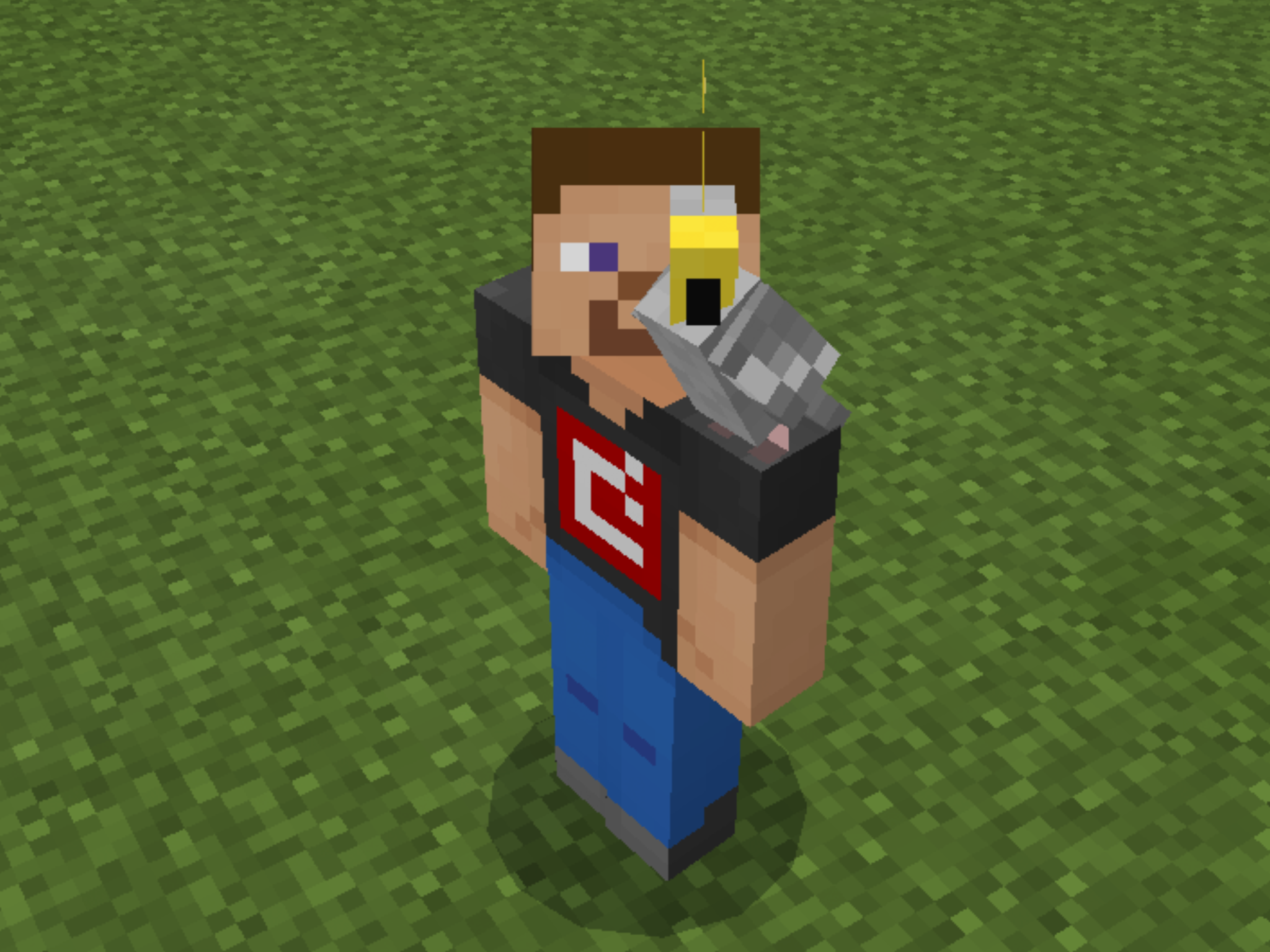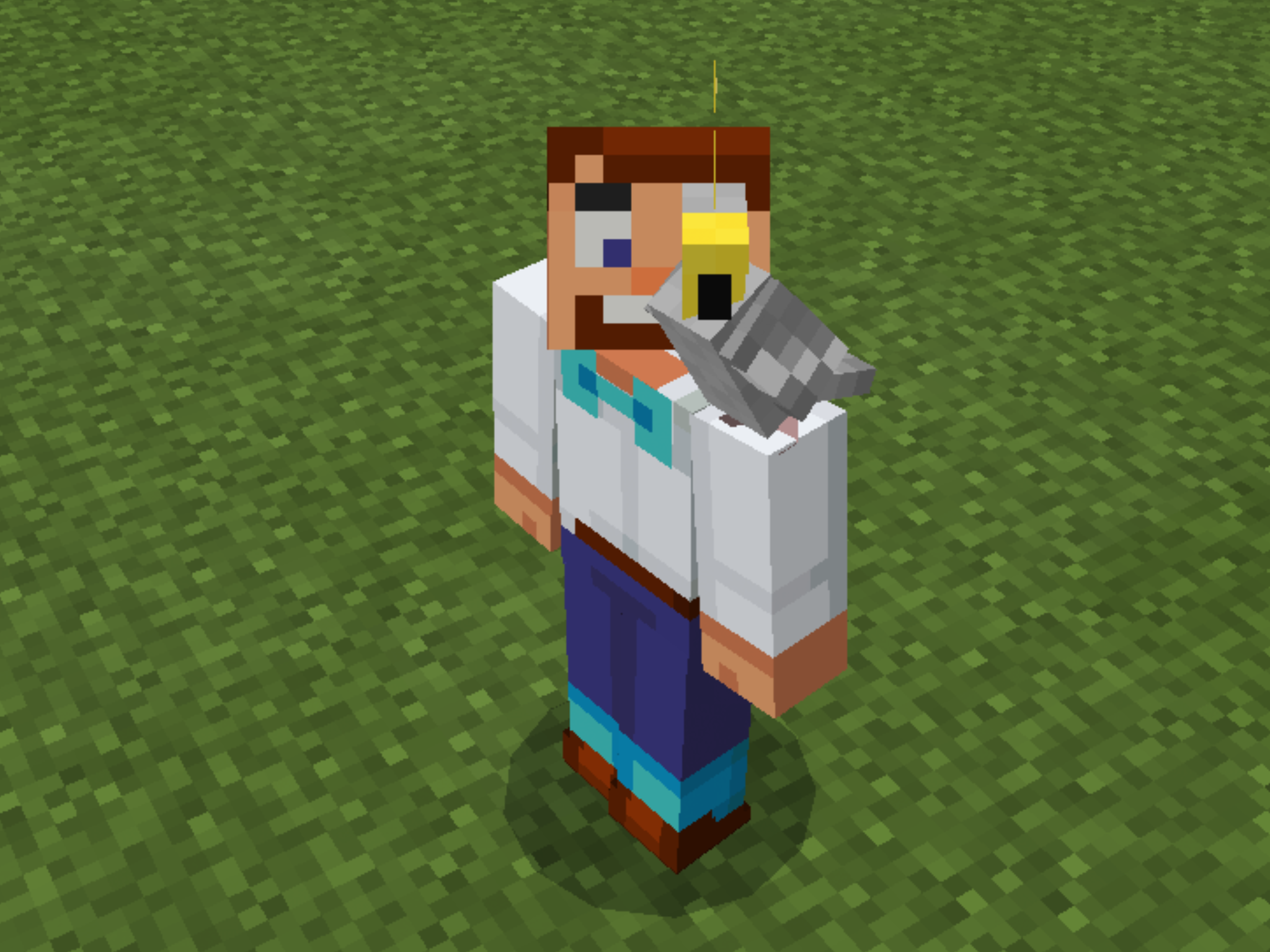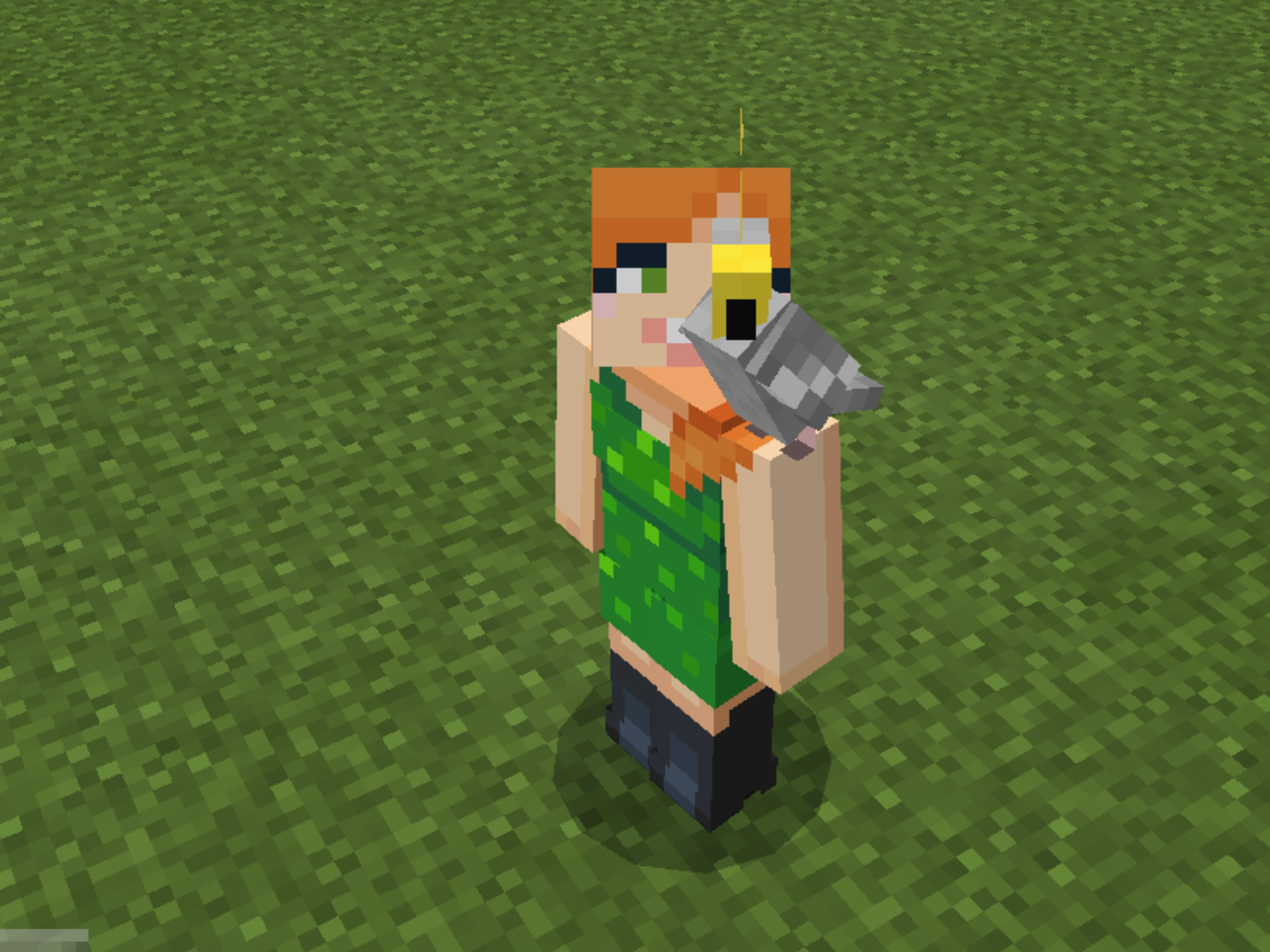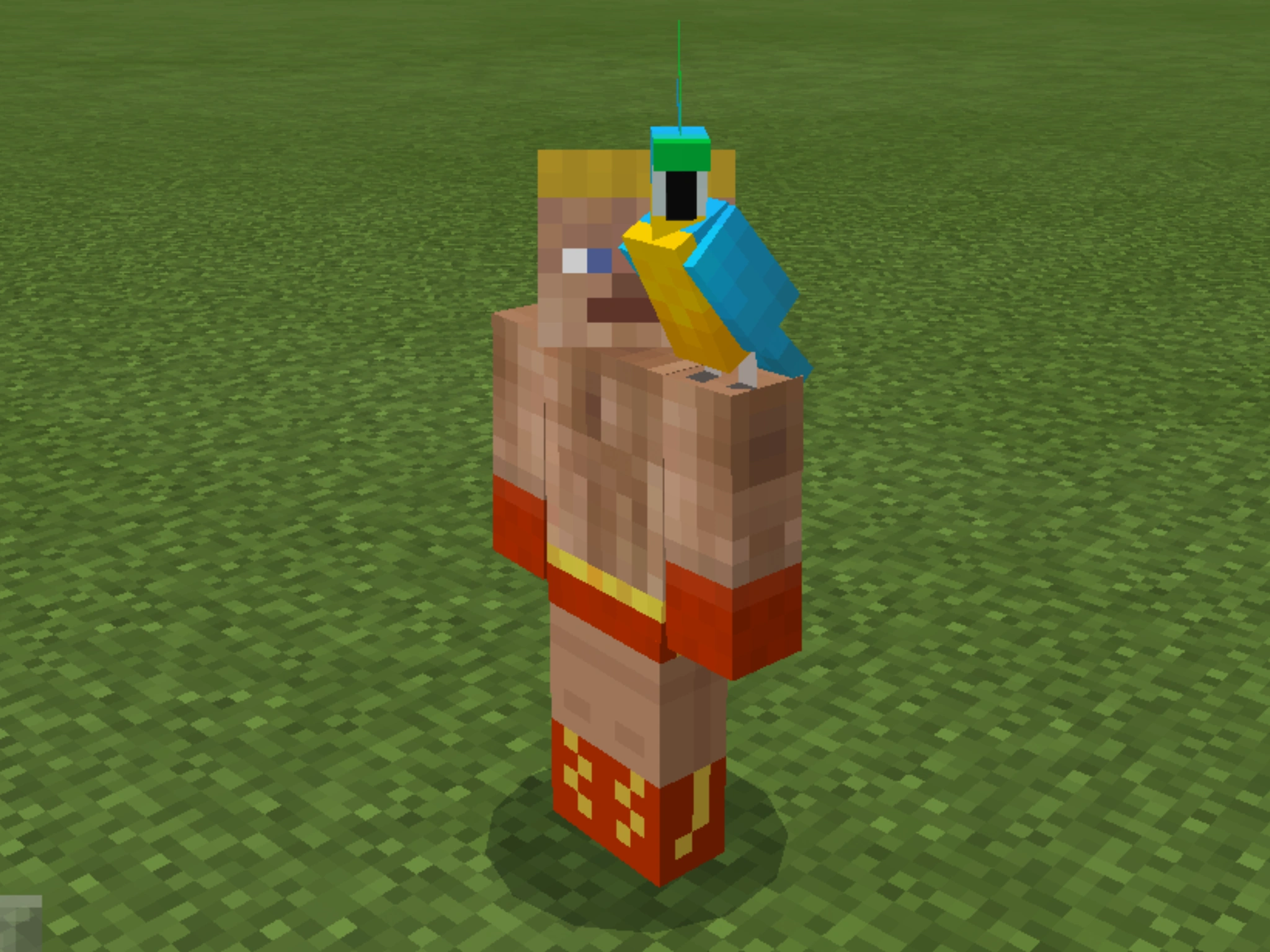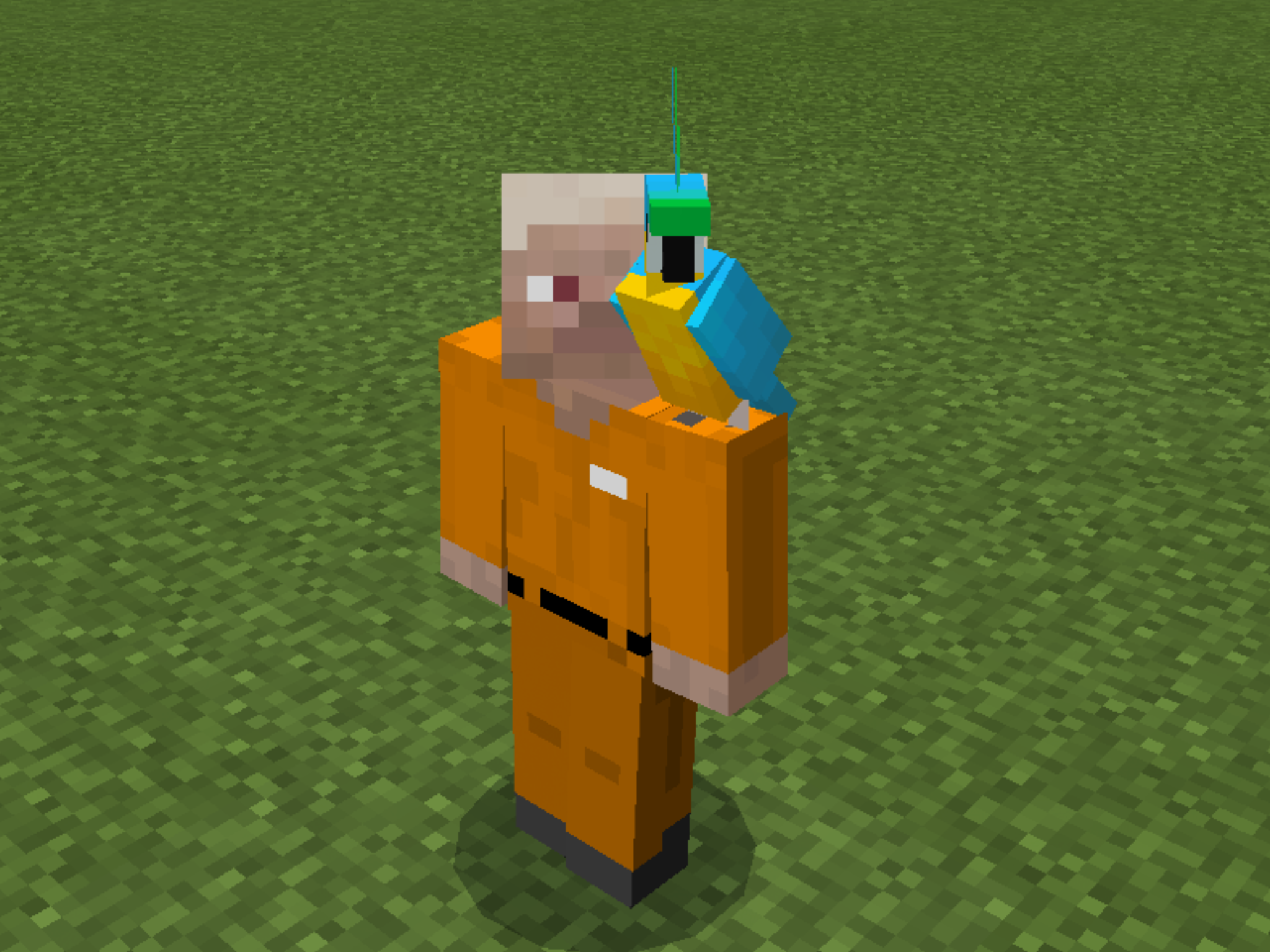 Note how the parrots crowd around the villager in a tight circle.