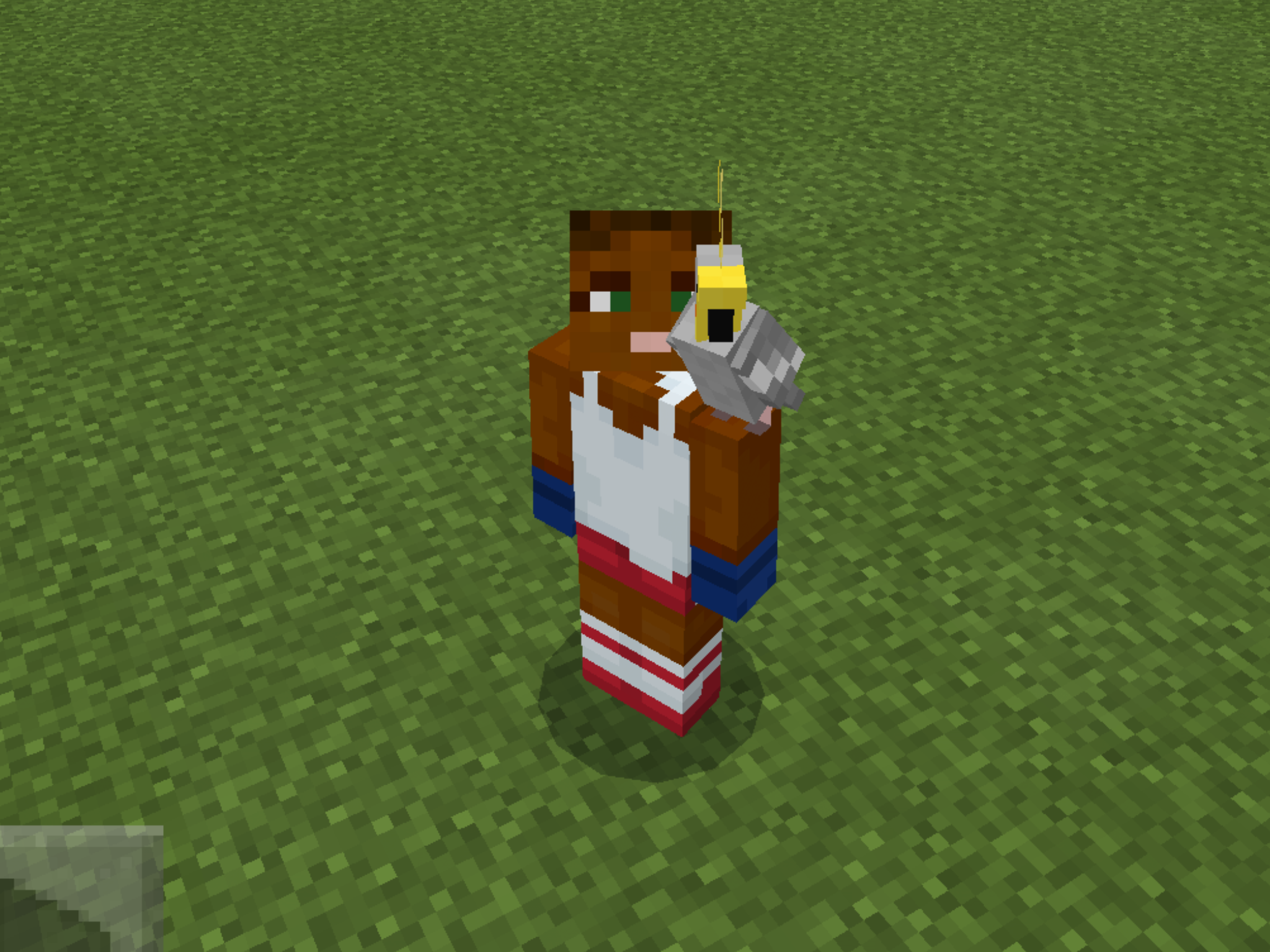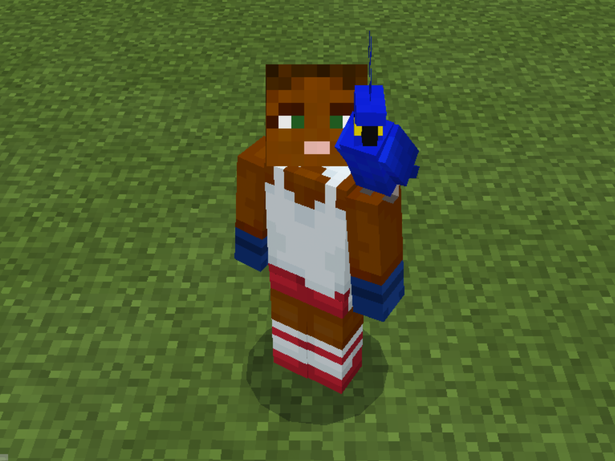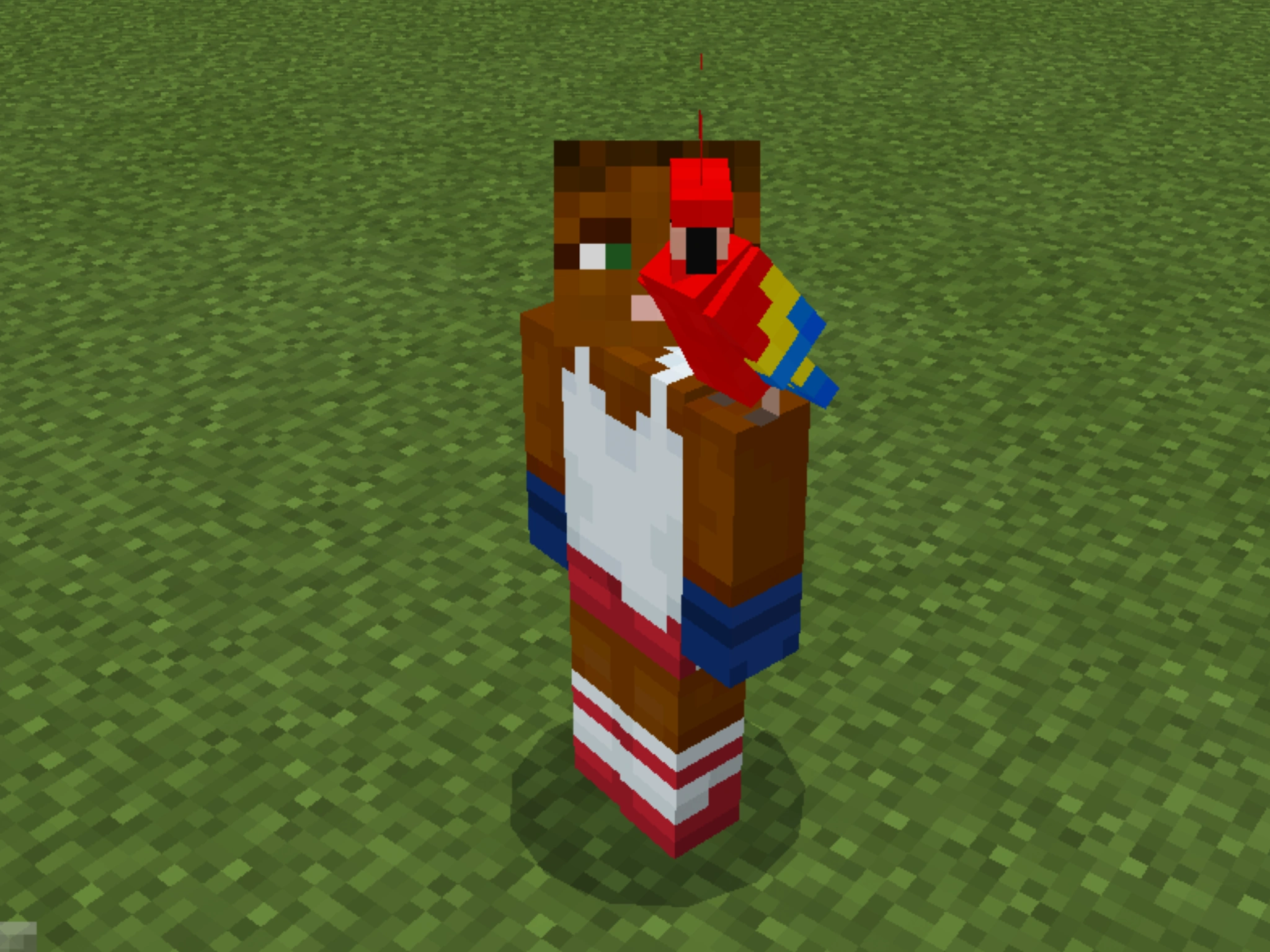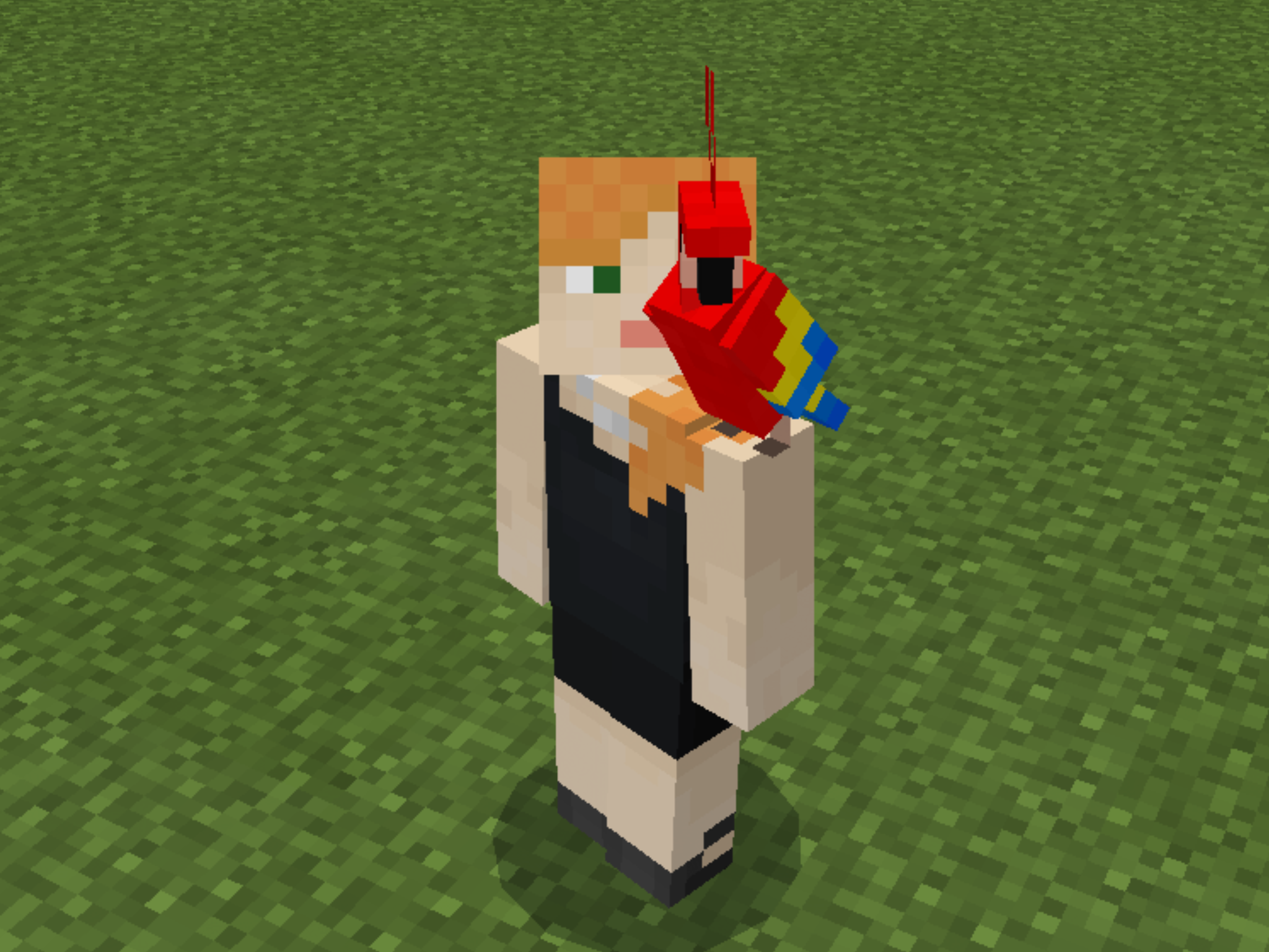 A tamed parrot on the ground can be made to perch on its player's shoulder by moving through the parrot. On its own, a tamed parrot can also fly to and perch on the player's shoulder, unless it has been told to sit. A player can have one parrot on each shoulder. Parrots always prefer a player's left shoulder first, if it is empty.