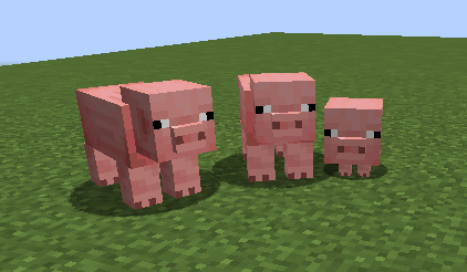 Pigs typically appear wandering in the Overworld in groups of 4. They randomly oink.
