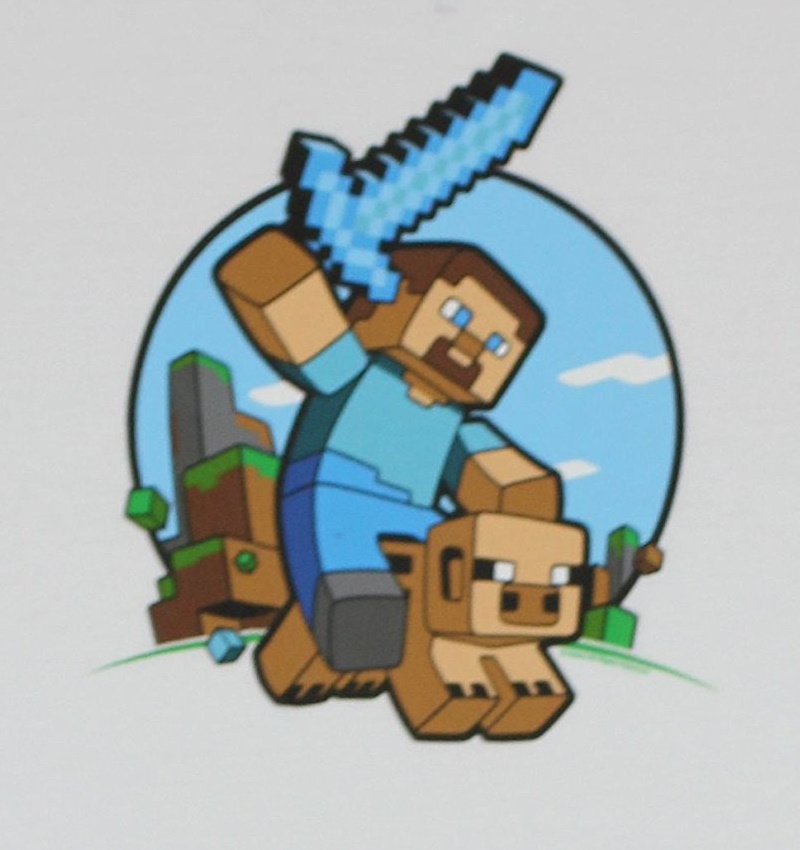 Official T-shirt artwork "Pig Riding" featuring Steve and a pig. Made by JINX.