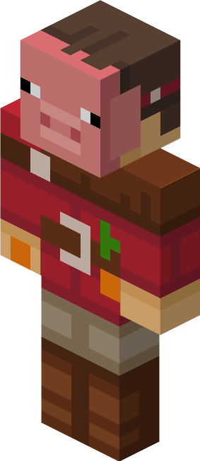Pigs roam the Overworld avoiding hazards and harmful falls. A pig flees for a short time when harmed.
