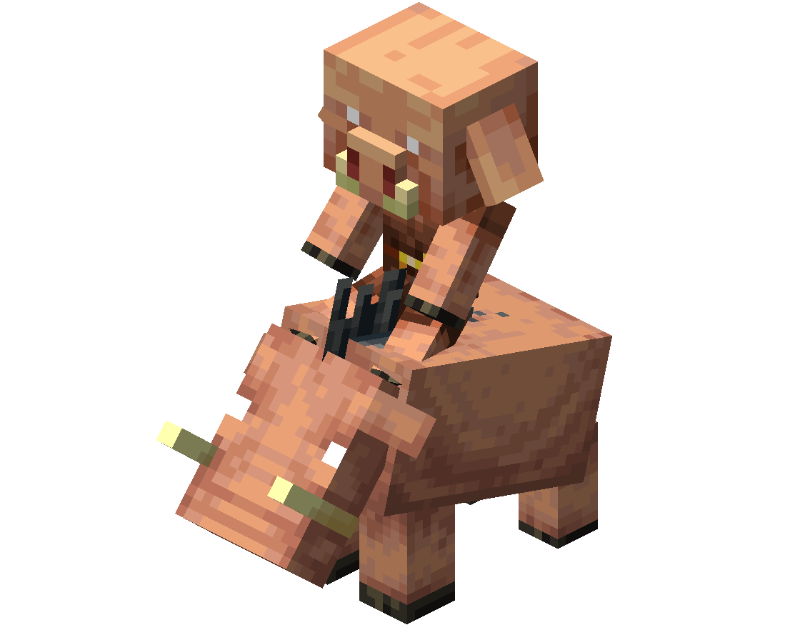 Baby piglins are passive and play with baby hoglins, running around and riding upon them. Up to 3 baby piglins may stack on top of each other while riding a baby hoglin.