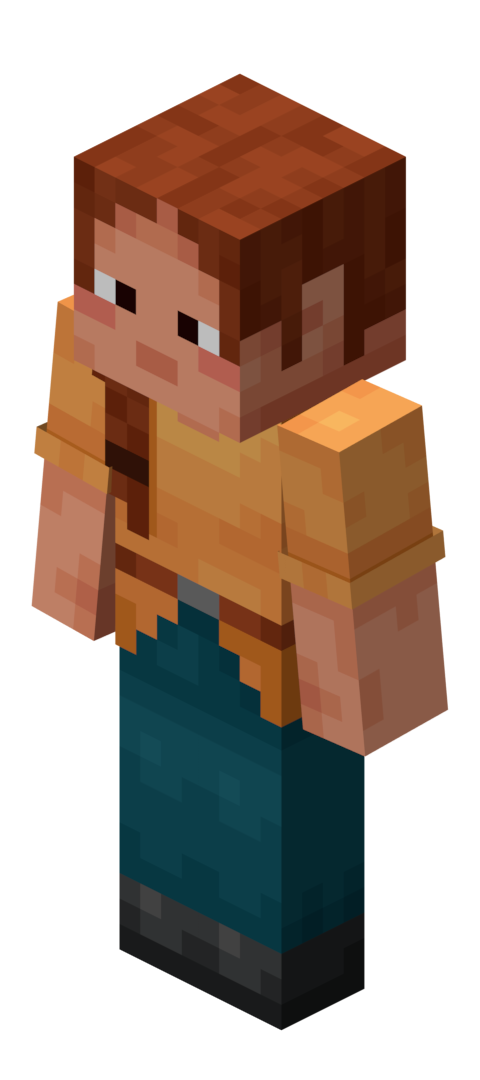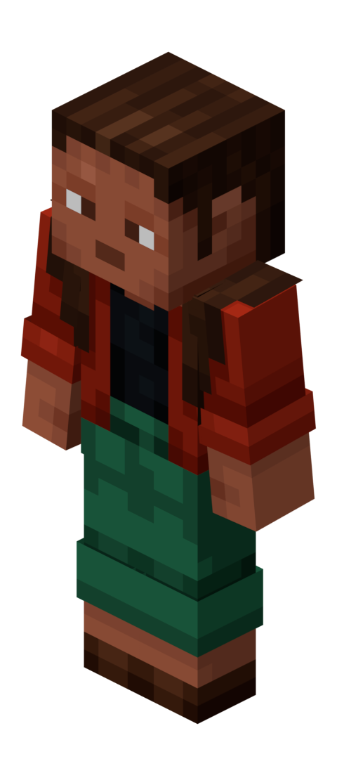 The player is the main controlled character in Minecraft. The nine default player skins are known as Steve, Alex, Noor, Sunny, Ari, Zuri, Makena, Kai, and Efe with all unchanged skins being split between these nine skins.