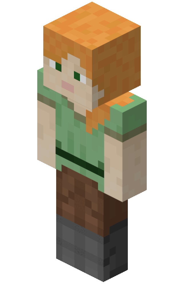 - The Alex skin is implied to be female in the description of a video from Minecraft's official YouTube channel, though never said outright through the use of pronouns or other methods.[12]