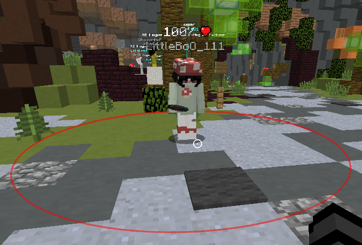 The attack reach area of 3 blocks is indicated by the red circle.