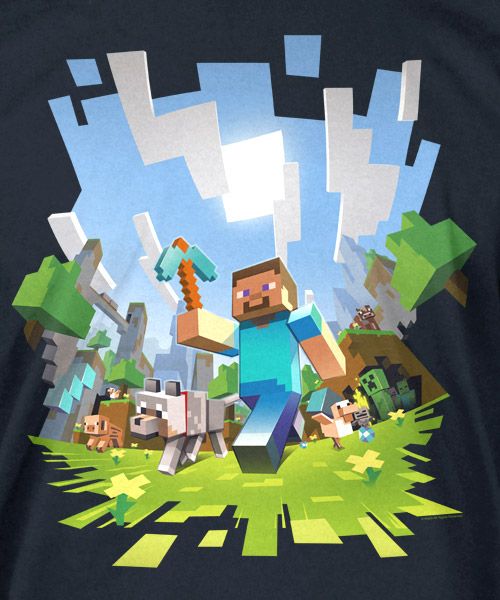 Official T-shirt artwork "Adventure" featuring Steve and other mobs. Made by JINX.