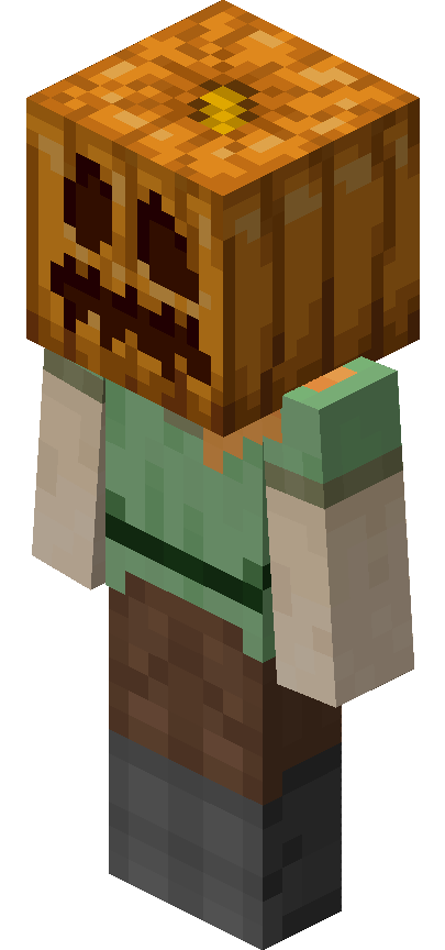 The player's appearance is commonly obscured by equipped armor such as turtle shells, as well as other equipable items such as elytra, carved pumpkins and heads. Players are also the only entity capable of having capes, as well as deadmau5 ears, depending on the account.