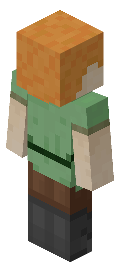 The player is the main character who can be controlled in Minecraft. The two default player skins are known as Steve and Alex, with all unchanged skins being split between the two default skins.