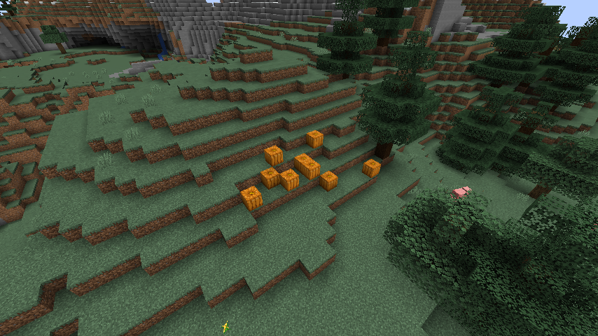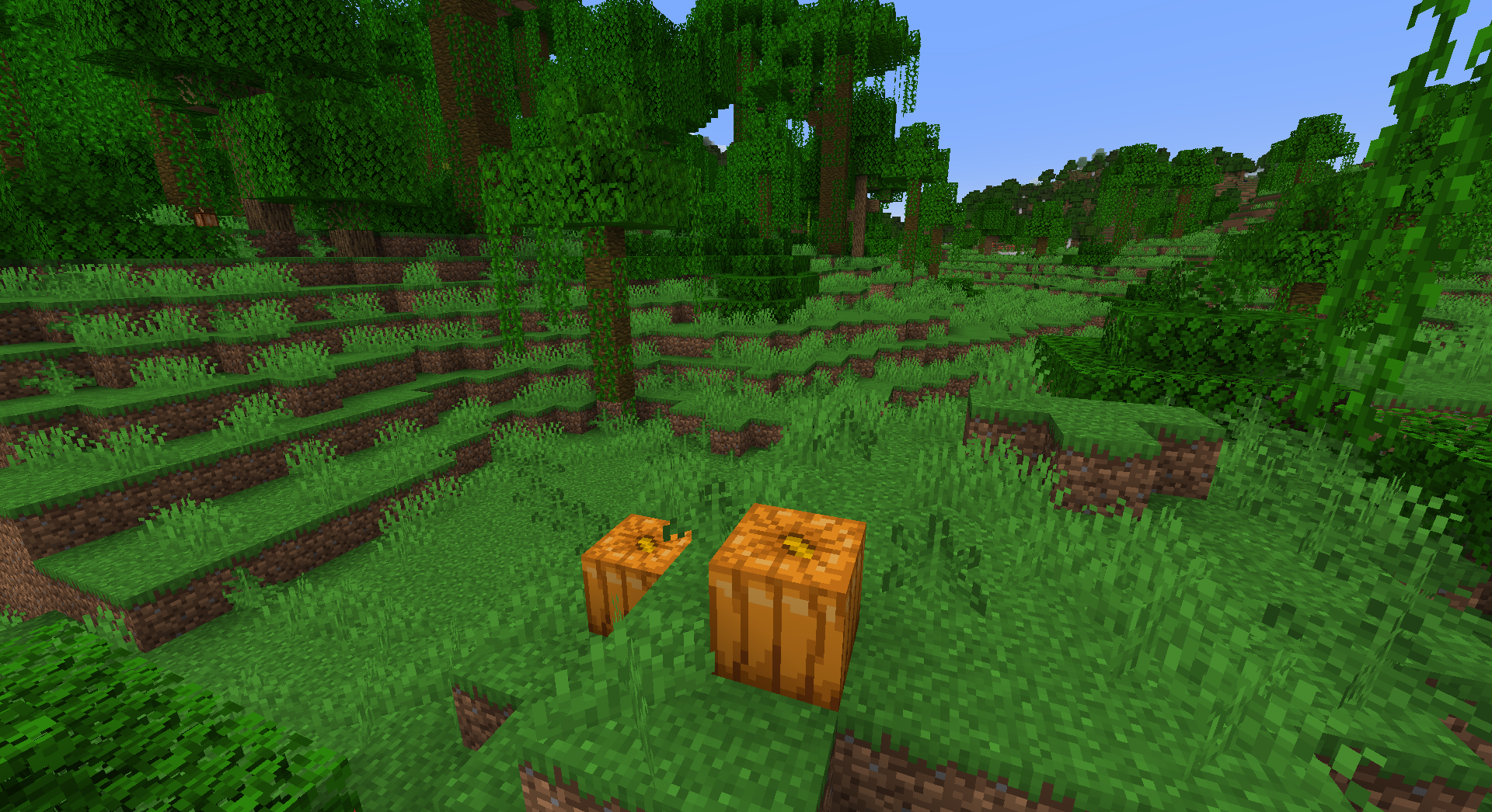 A pumpkin is a fruit block that appears in patches in grassy biomes. Pumpkins have the same texture on all 4 sides.