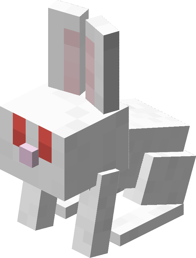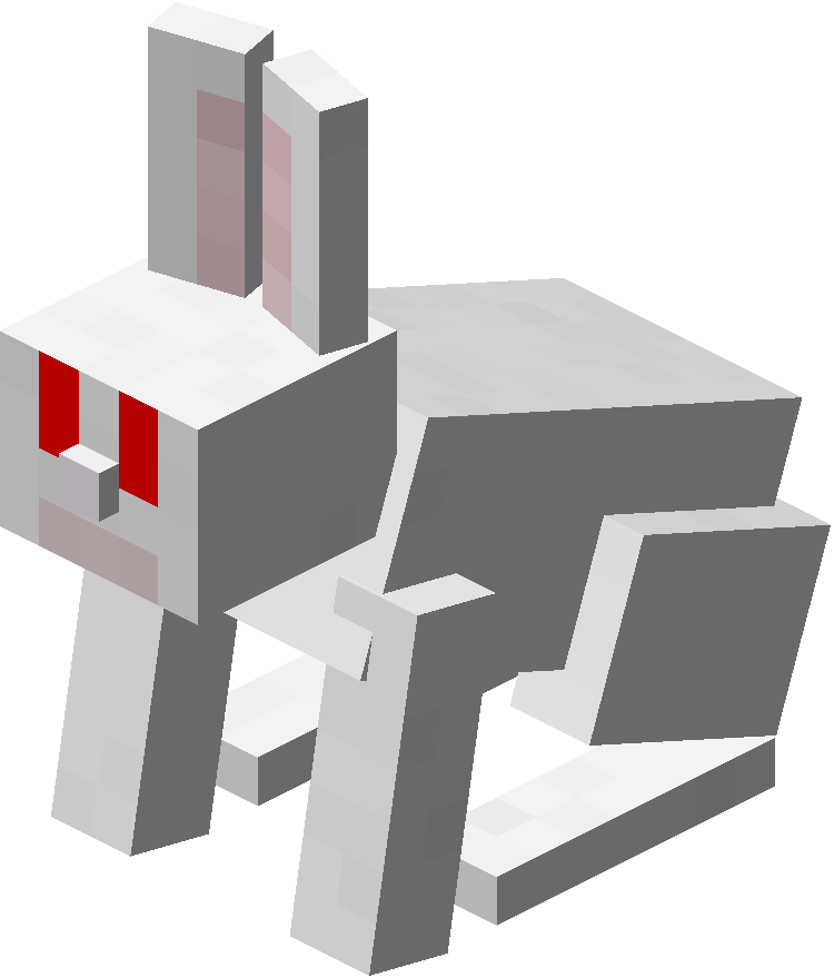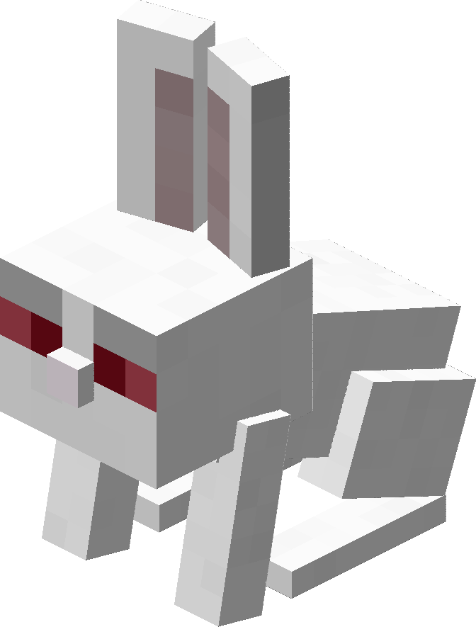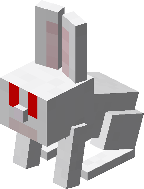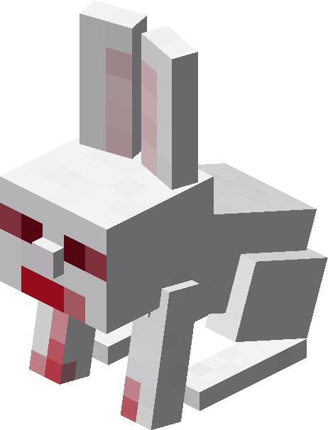 The killer bunny is an aggressive variant of the rabbit exclusive to Java Edition that is hostile toward players, foxes, and wolves. Its fur is pure white with blood-red eyes that are horizontal, compared to a normal rabbit's vertical eyes. It can be spawned only by using the /summon rabbit ~ ~ ~ {RabbitType:99} command. It appears with a nameplate over its head reading "The Killer Bunny".