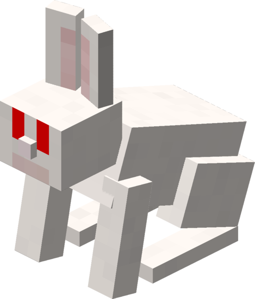 The killer bunny (previously known as the killer rabbit of caerbannog, which is a reference to the scene in Monty Python's The Holy Grail) is a variant of the rabbit specific to Java Edition that is hostile to all players. Its fur is pure white with blood-red eyes that are horizontal, compared to a normal rabbit's vertical eyes. It can only be spawned using the /summon rabbit ~ ~ ~ {RabbitType:99} command. It appears with a nameplate over its head reading "The Killer Bunny".