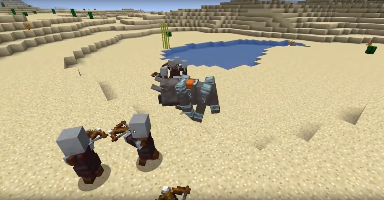 In Java Edition, vindicators in a raid take the initiative to open and close doors to search for villagers. They can sometimes break a wooden door in Normal [verify] or Hard difficulty if they cannot open the door normally. Evokers and illusioners gain 3X[verify] movement speed without any effect.