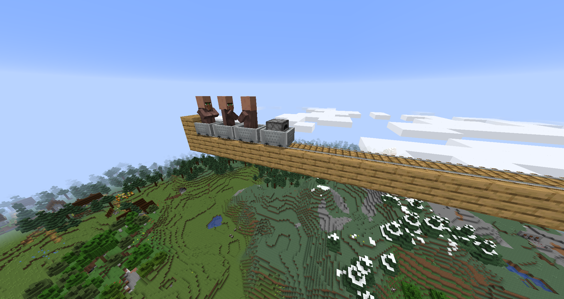 In Java Edition, some mobs (such as pillagers, zombies, sheep and many others) avoid walking on rails, and walk off rails when pushed onto them.[1]