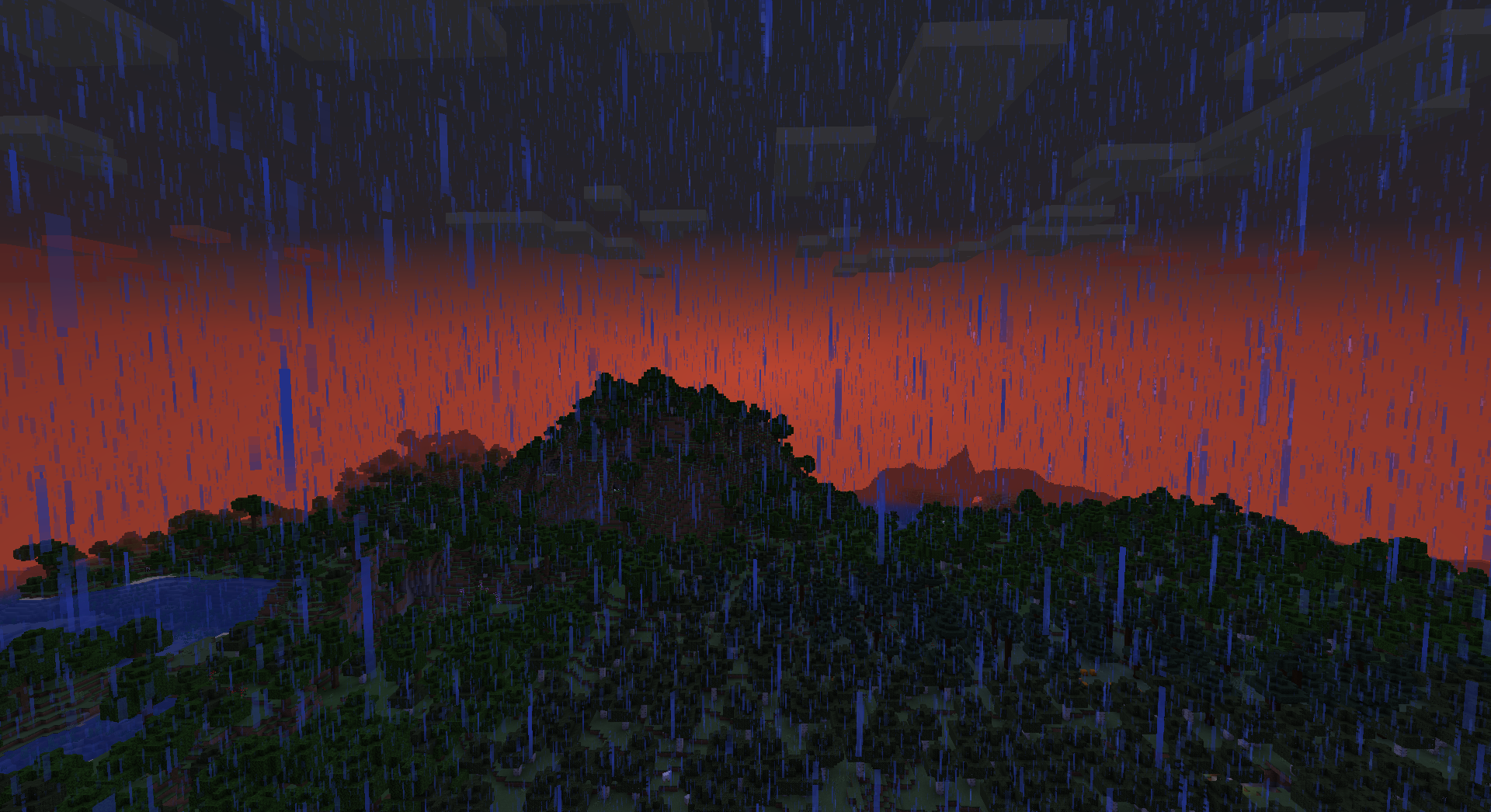 Rain and falling snow were included in Beta 1.5. Rain looks identical to the rain in Classic, but also plays two different sound files.
