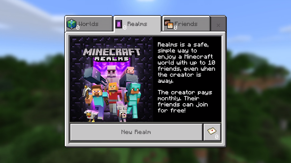 Realms is a subscription-based service. The link above goes to the player's Minecraft account page, which offers options to extend a current subscription or buy a new one (US$3.99 per month in Bedrock Edition, and US$7.99 per month in Java Edition).[3][4]