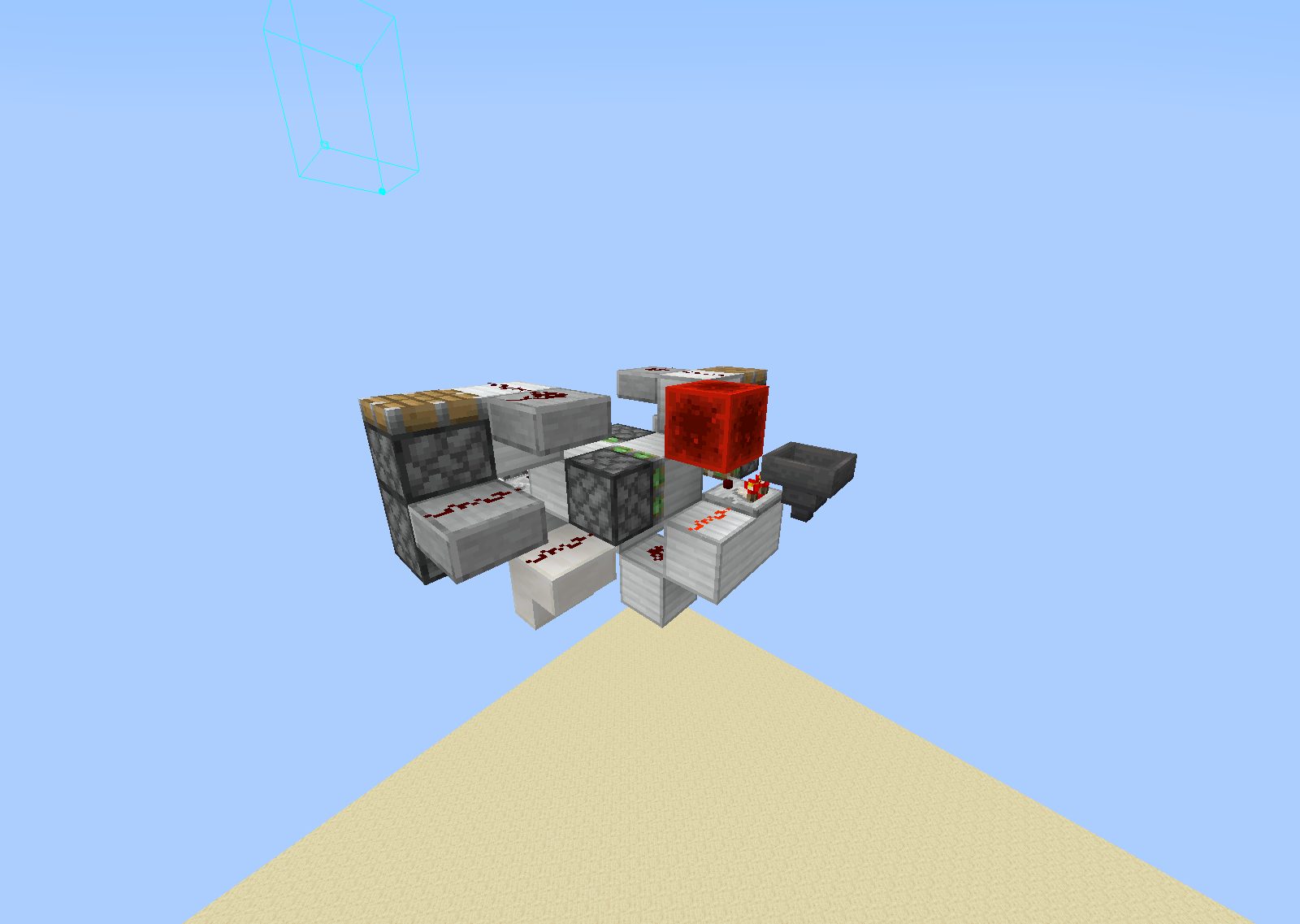 Design F is an unusual, stable, 1-tick piston clock. Unlike most repeater-based 1-clocks, its signal is fast enough to make a sticky piston reliably toggle its block, dropping and picking it up on alternate pulses. For the clock to work, the block the piston moves must be placed last. The piston extends and retracts quickly. The output wire appears to stay off, because it's changing state faster than the game visually updates. However, attaching a redstone lamp, dispenser, dropper, piston, etc. to the output shows that it is working. The clock can be turned off by a redstone signal (e.g. the lever shown on the block below it) to the piston.