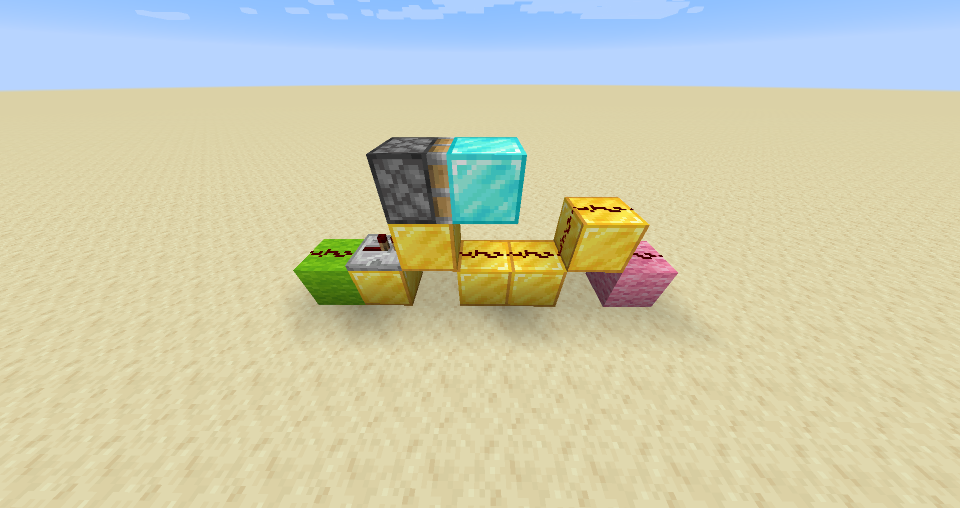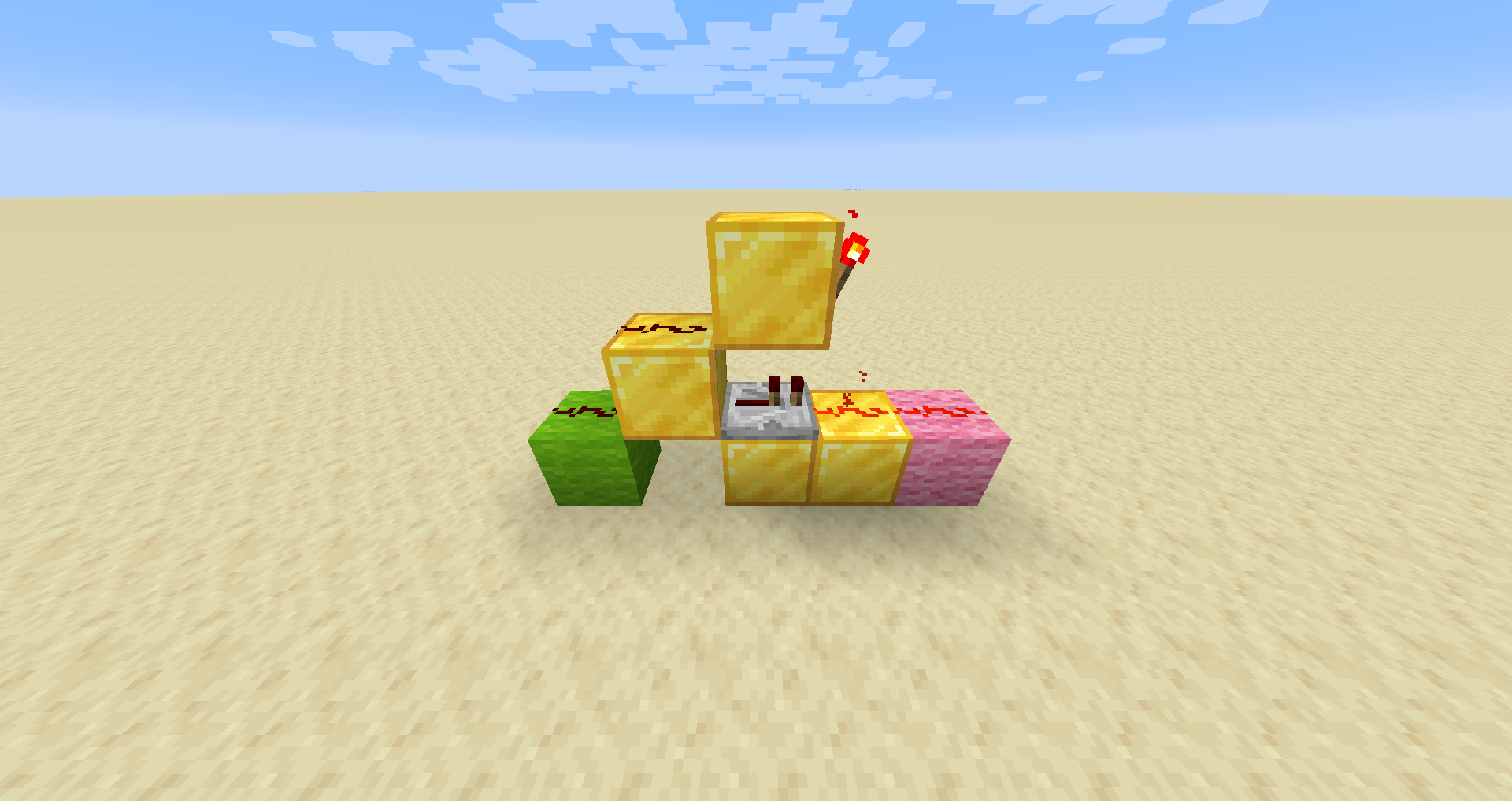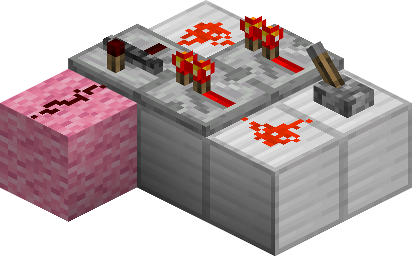 - Variations: The piston and block of redstone can be moved to the side of the dust, rather than on top of the dust, producing a flat 2-wide circuit.