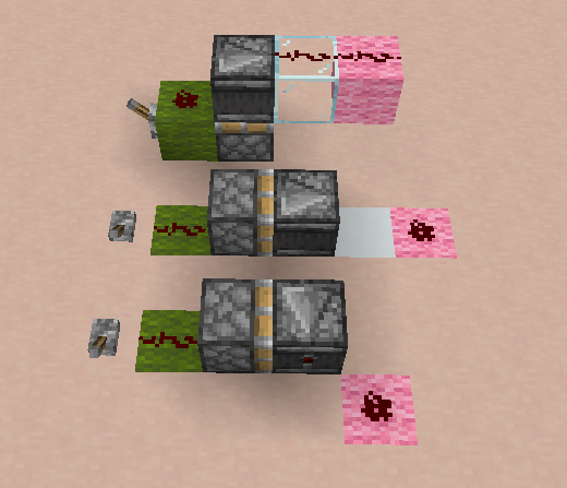 - ↑ "RamblinWreckGT" (29 March 2013). "Monostable Circuits and Sticky Pistons in 1.5.1" (Post #3). Minecraft Forum.