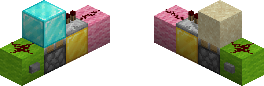 - A block update detector produces an output pulse when a specific block is updated (for example, stone is mined, water turns to ice, etc.)