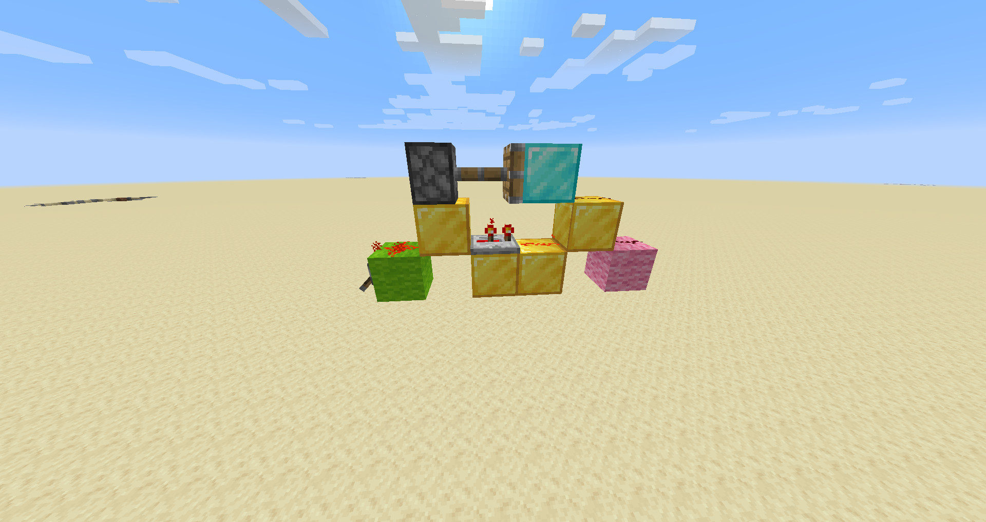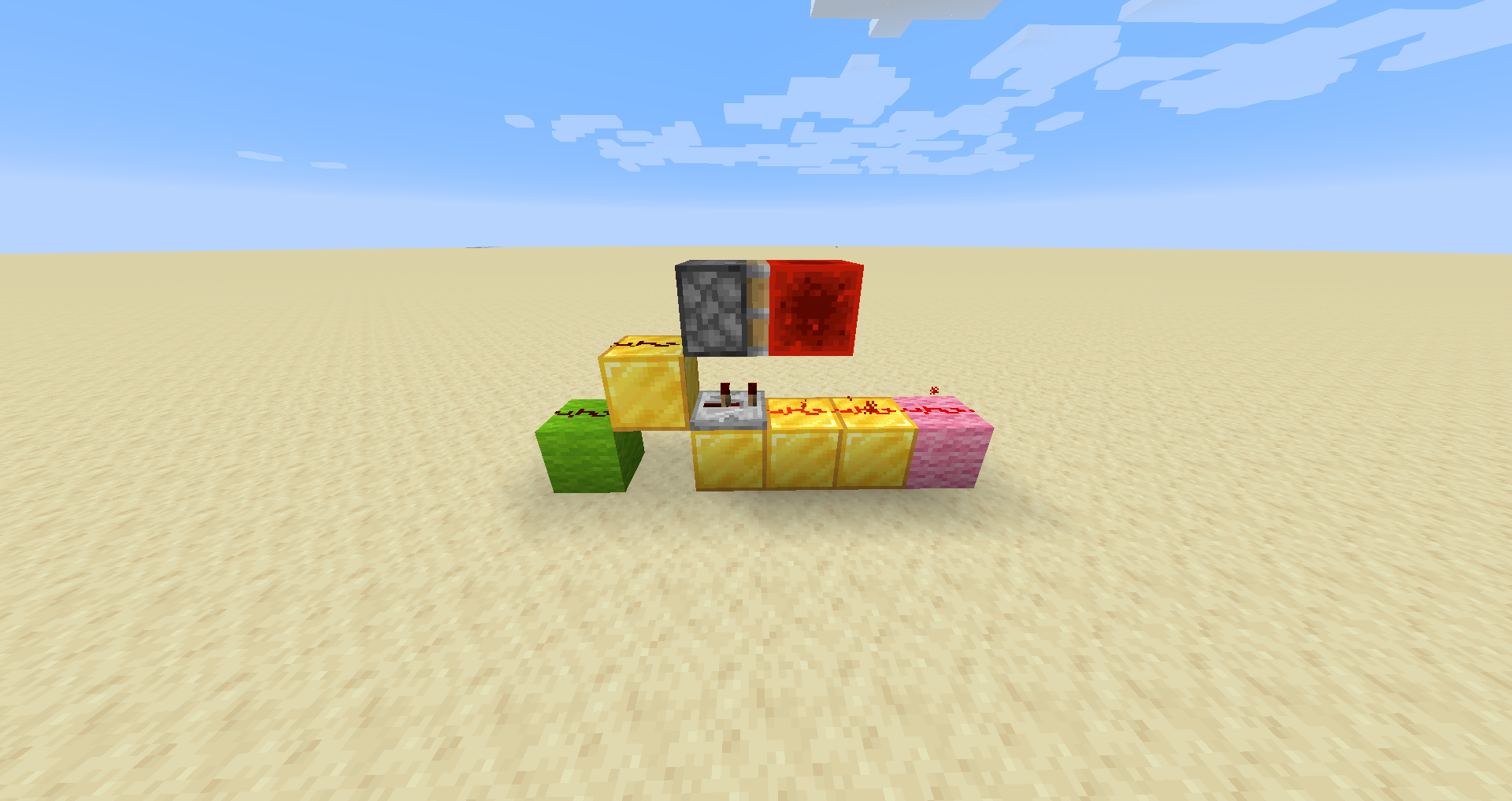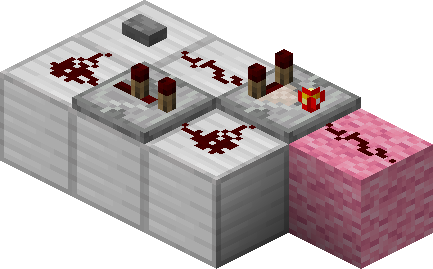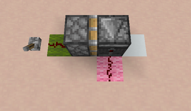- Variations: The piston and block of redstone can be moved to the side of the dust, rather than on top of the dust, producing a flat 2-wide circuit.