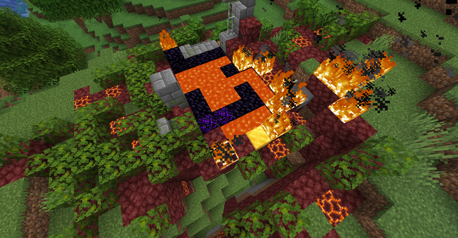 A giant ruined portal generated in the Nether.