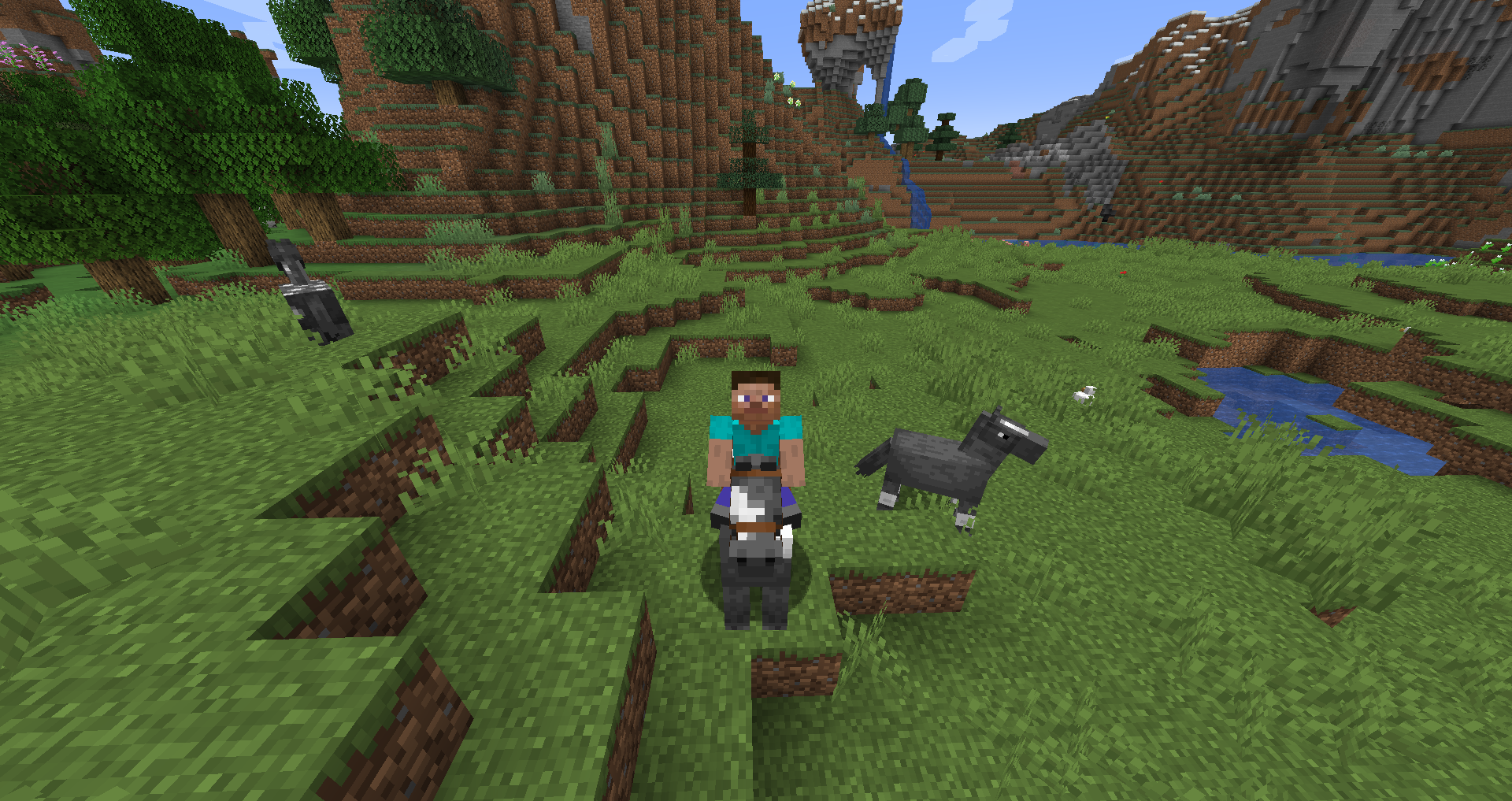 - When riding a saddled mob, the hunger bar is replaced by hearts (representing the mounted mob's health) resembling the look of the saddle.