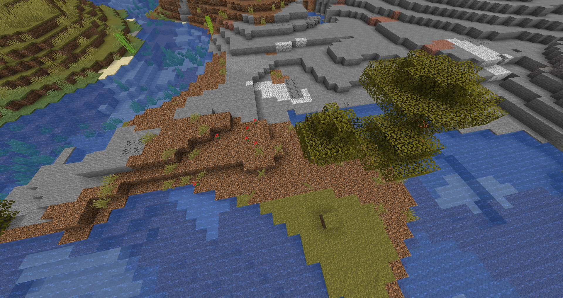 A windswept savanna biome, noted by the coarse dirt and exposed stone, that failed to properly generate due to a river.