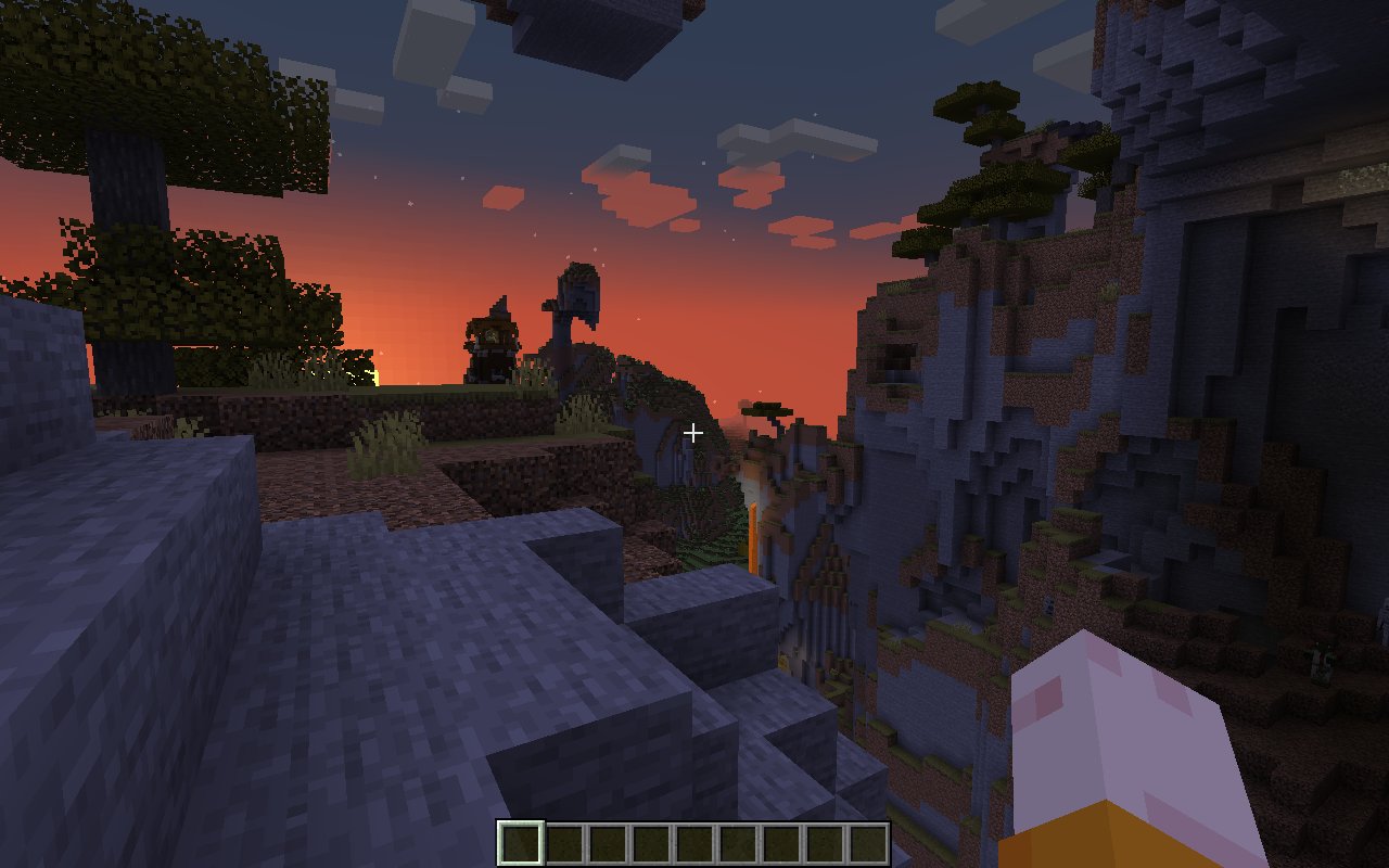 The steep generated mountains make this variant almost unsuitable for shelter and even just exploring quite hazardous, due to the sharp cliffs often risking fatal fall damage if not above water. Additionally, the giant overhangs often reduce skylight on the terrain below them, not only enough to spawn hostile mobs in daylight, but to produce complete darkness similar to caves, further adding to the difficulty of this biome.