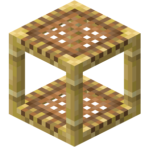 Scaffolding is a block used when building structures to help the player reach higher places, or to descend safely without taking fall damage.