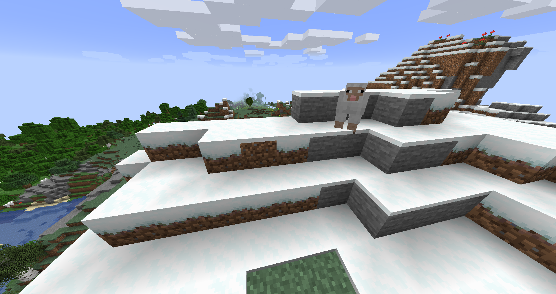 Sheep are common passive mobs that supply wool and mutton and are found in many of the grassy biomes.