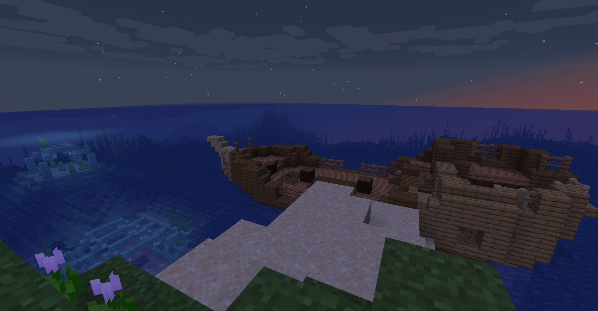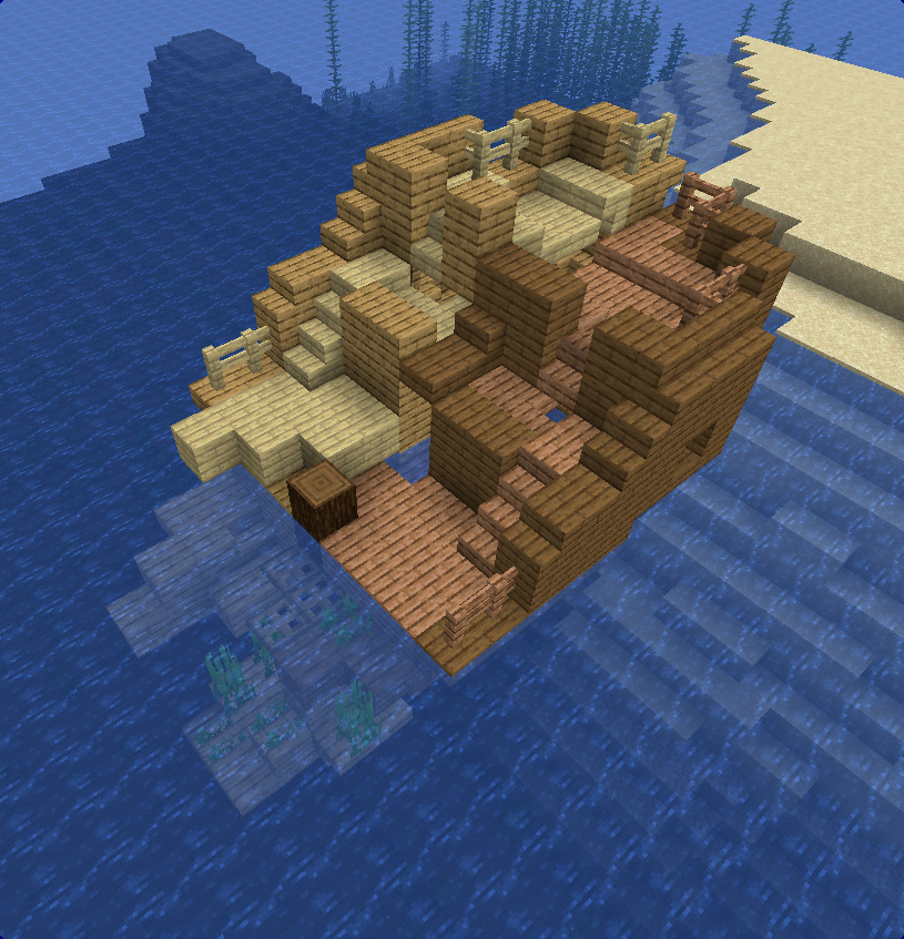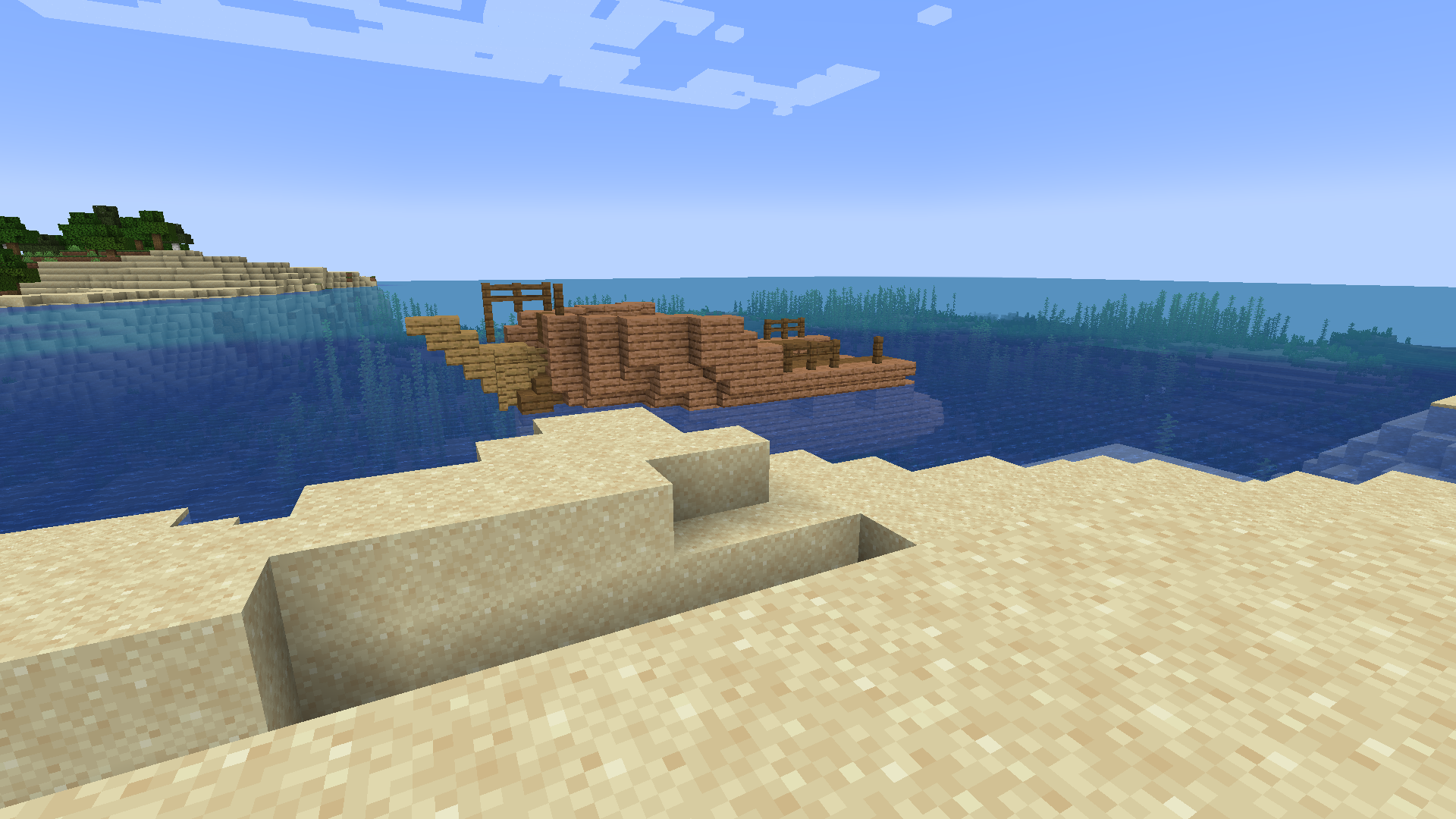A shipwreck is a structure found in oceanic biomes resembling a sunken sailing ship.