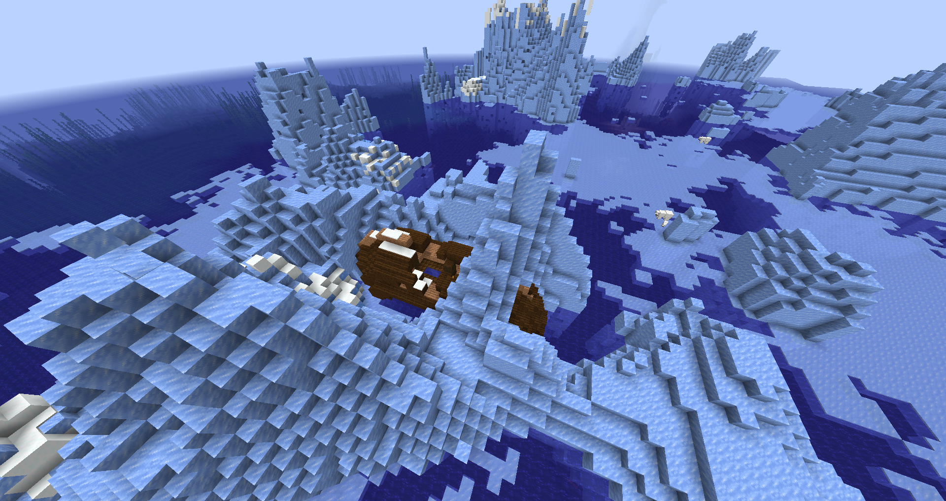 Shipwrecks generate in all ocean biomes rarely. On rarer occasions, they generate above sea level nearby the water, in beaches, snowy beaches or inside an iceberg,[1] underwater ruin, monument or ravine.