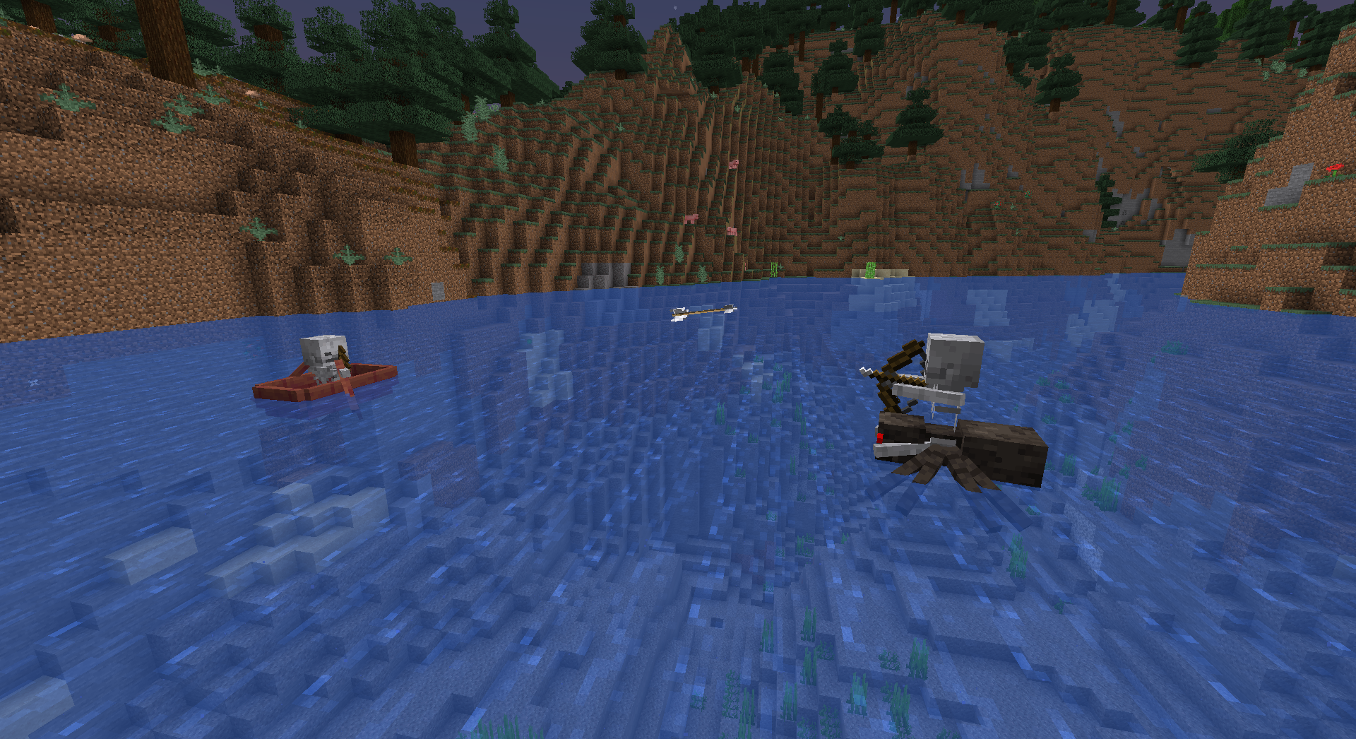 Going after skeletons while swimming is not advised, as the water will slow the player's movement down to the point of making them an easy target for the skeleton's arrows.