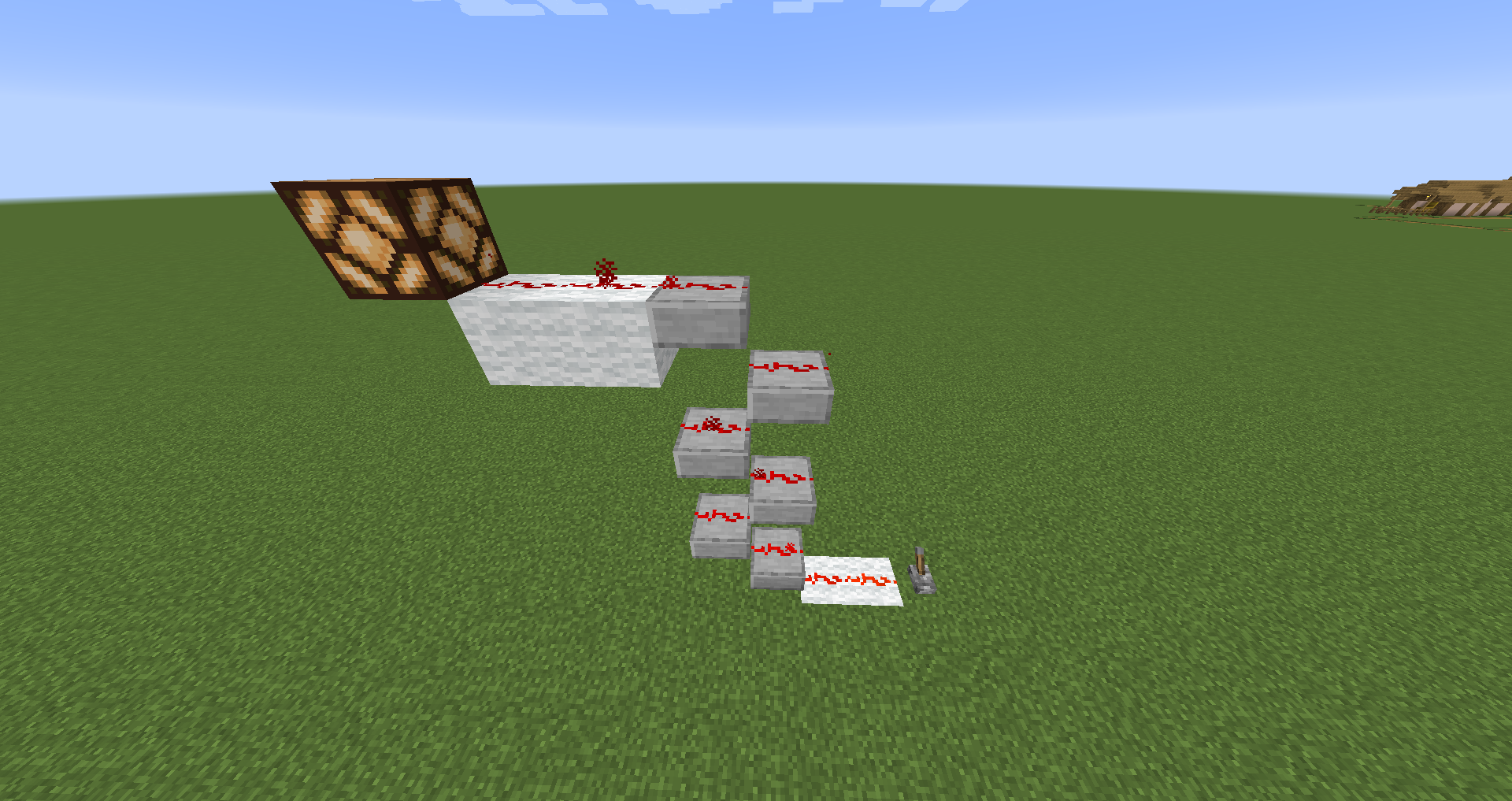 An example of how top slabs can make redstone travel compactly "up stairs".