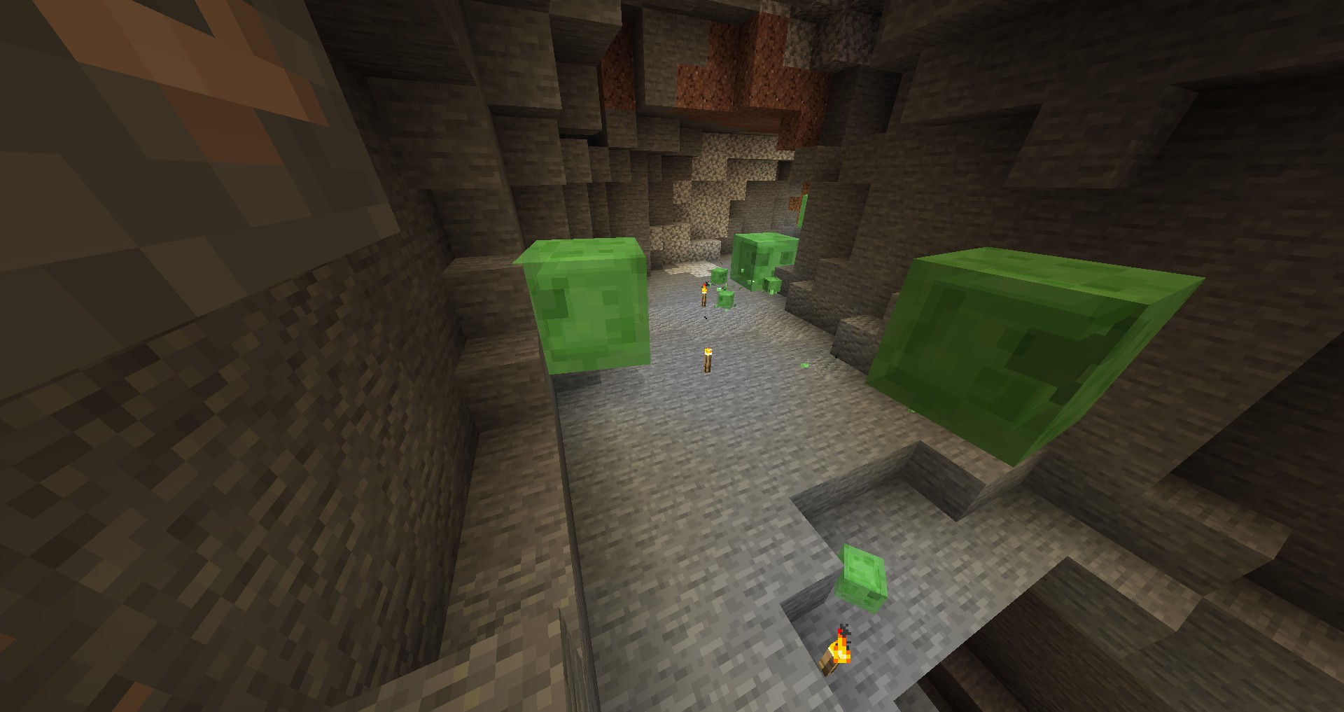 Slimes of various sizes underground.