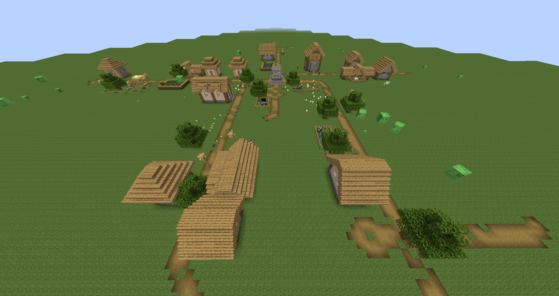 A group of slimes within a Superflat world.
