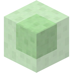 A slime block is a storage block equivalent to nine slimeballs. It has both sticky and bouncy properties making it useful in conjunction with pistons to move both blocks and entities.