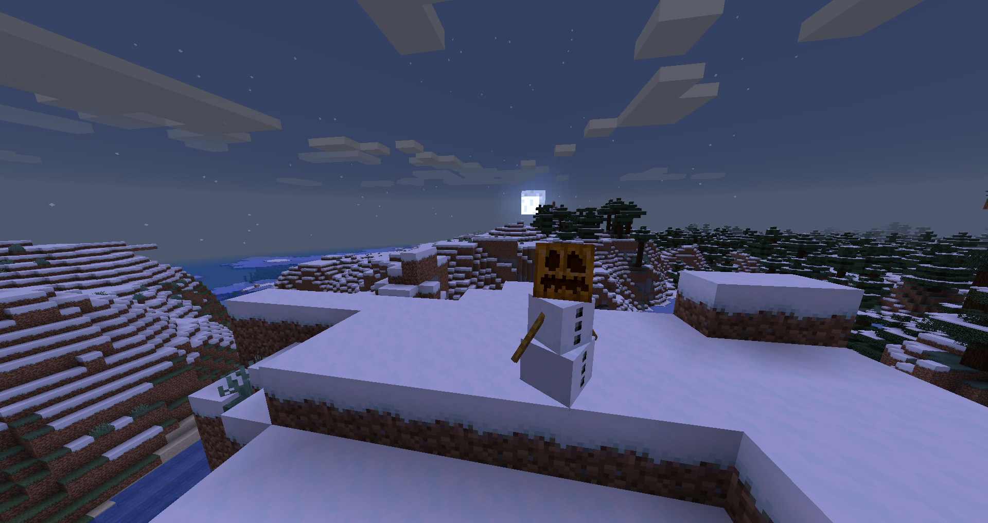 OnBlockPlace("placed by a player") event. - Snow golems rarely spawn naturally in snow biomes; if two snow blocks happen to spawn naturally with a patch of pumpkins, a snow golem may spawn naturally.[Bedrock Edition only]