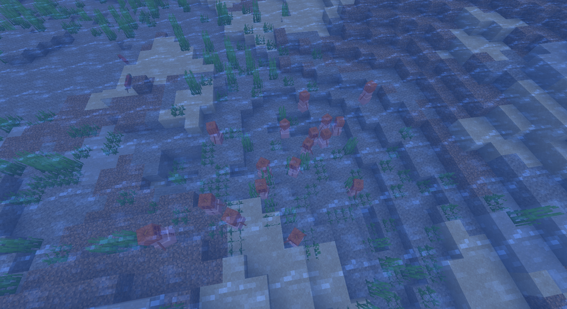 A large group of snow golems in a lake.