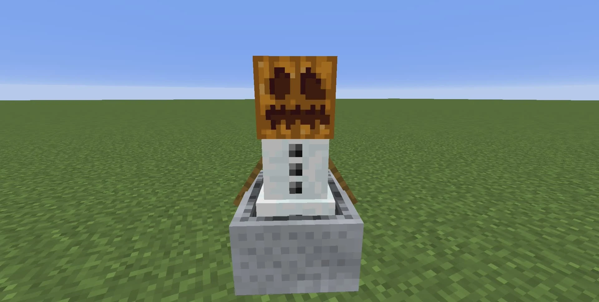 A snow golem wears its carved pumpkin as a helmet, just like the player does: its actual head is hidden beneath. Shearing a snow golem removes the pumpkin, revealing its face and making it drop the pumpkin. The pumpkin is not part of its ArmorItems; a snow golem does not display its HandItems or its ArmorItems. The player cannot give a snow golem a new pumpkin after shearing it off.